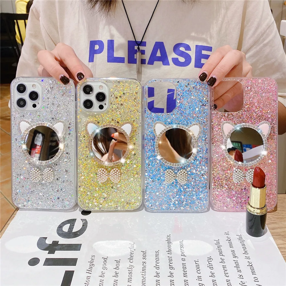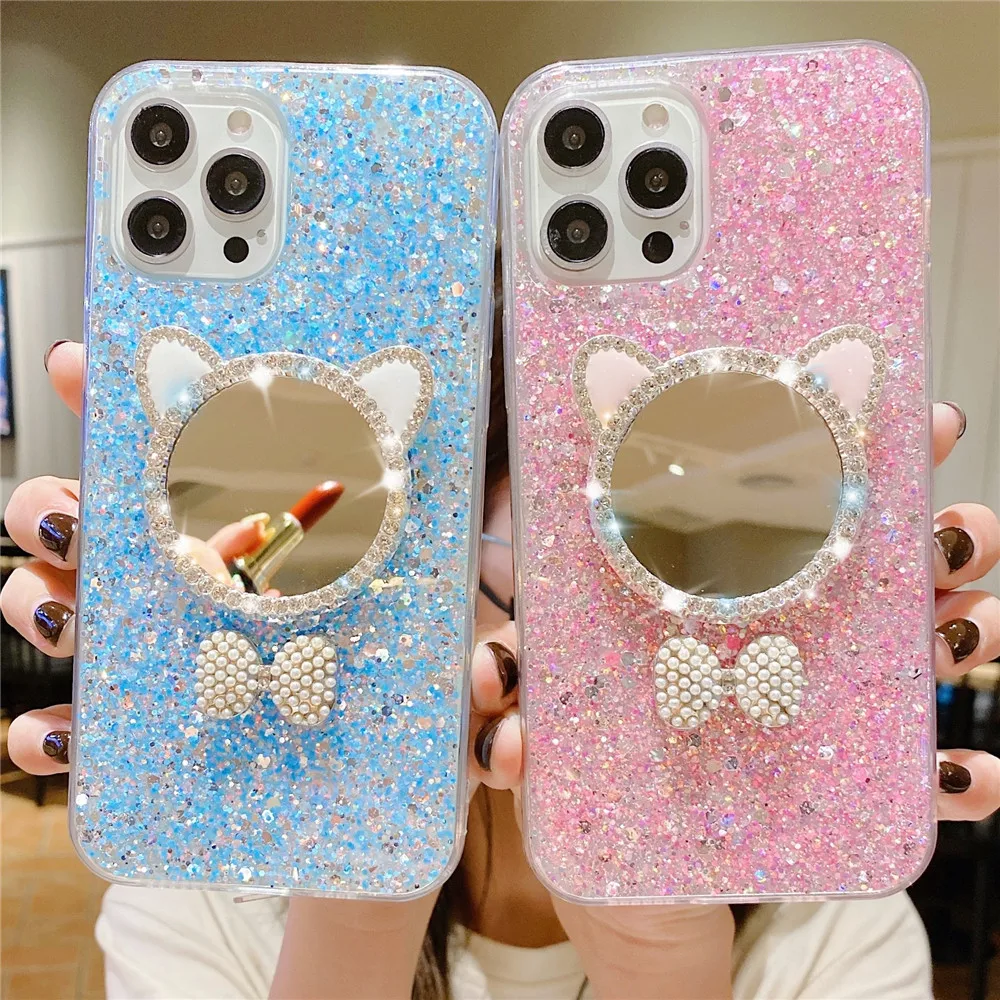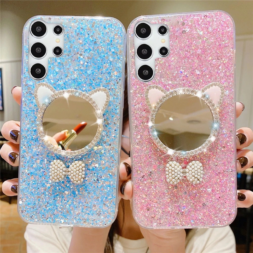 Glitter Diamond Mirror Phone Case For Samsung Galaxy A55 A35 A15 A05S A25 A24 A34 A54 A14 A13 A23 A33 A53 A12 A32 A52 Cat Cover