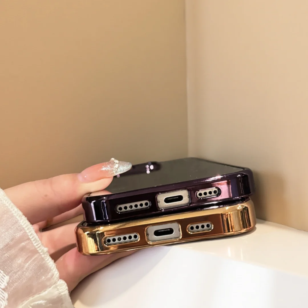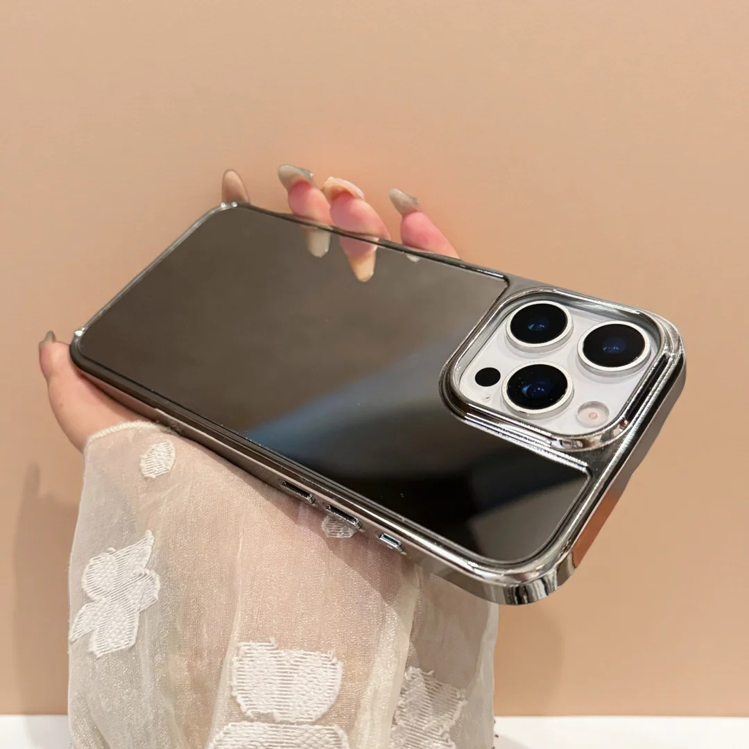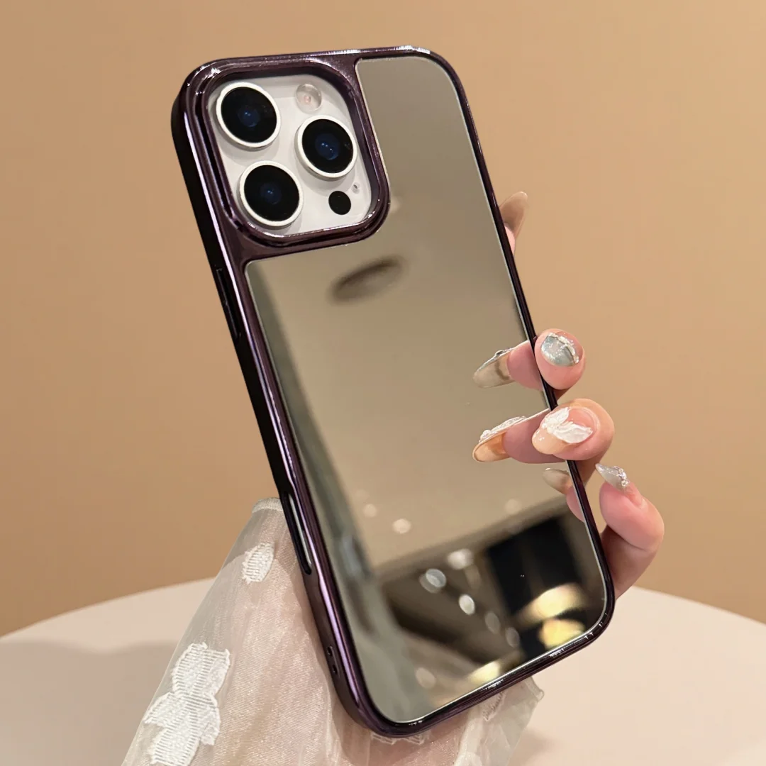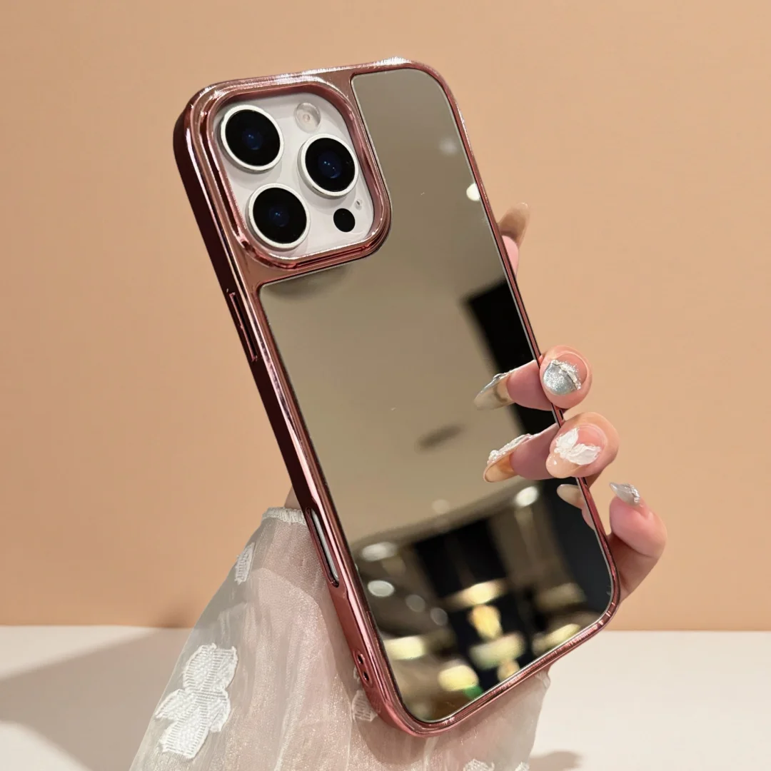 Funda de teléfono con espejo de maquillaje brillante galvanizada, funda protectora a prueba de golpes para iPhone 17 Air 16 15 14 13 12 11 Pro Max Plus 11 XR