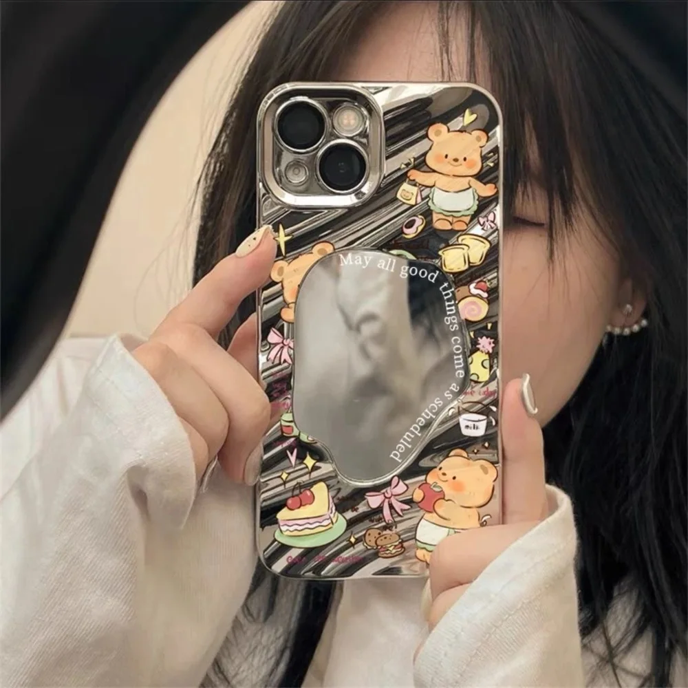 Funda de teléfono con espejo de maquillaje de lujo para iPhone 16 11 13 15 Pro Max 14 12 16promax 15promax 14promax funda suave a prueba de golpes