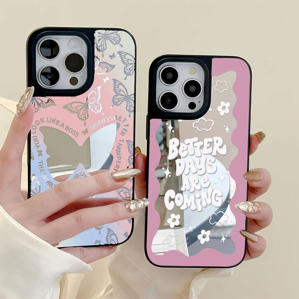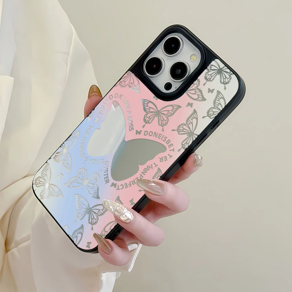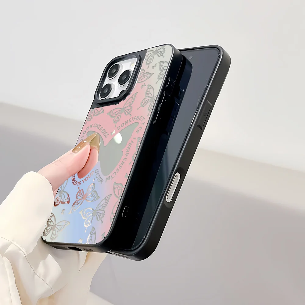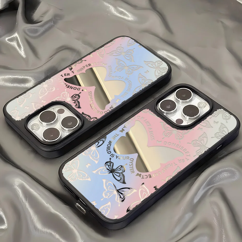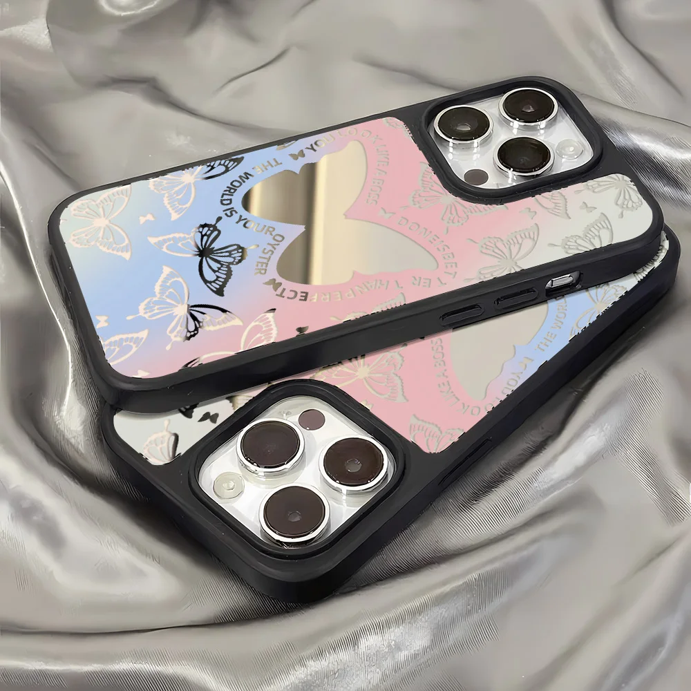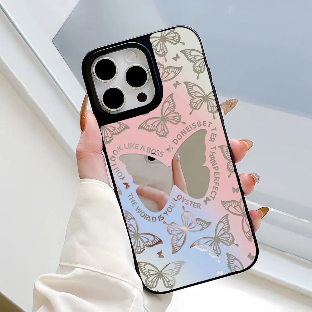 Funda de teléfono con espejo de maquillaje de lujo para iPhone 17 Pro Max 16 13 14 11 12 Air 17promax cubierta pintada de mariposa a prueba de golpes Funda