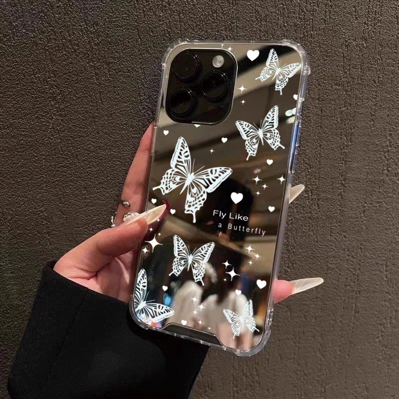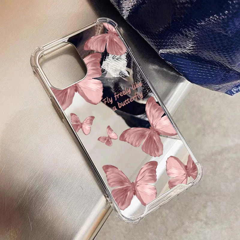 Funda de teléfono con espejo de mariposa rosa para iPhone 16 15 14 13 12 11 Pro Max XS X XR 7 8 Plus SE espejo de maquillaje cubierta suave a prueba de golpes