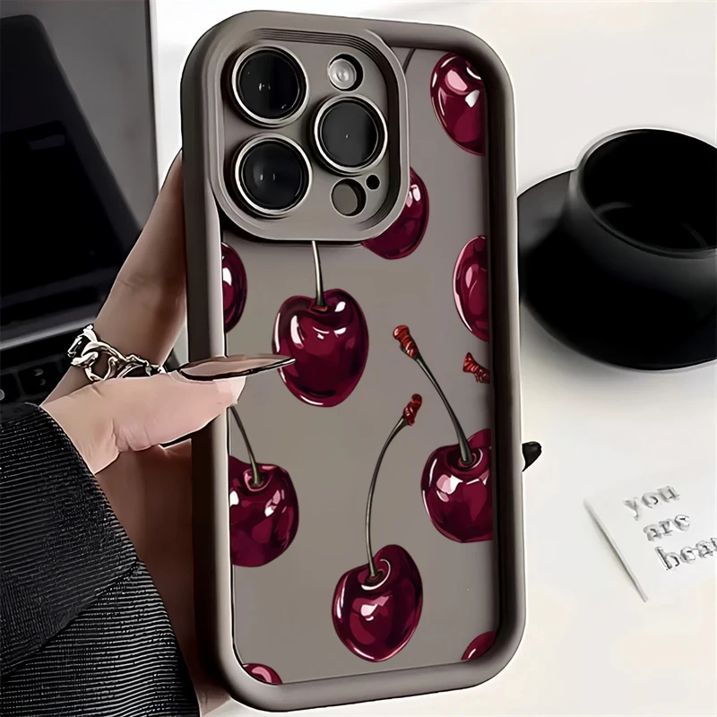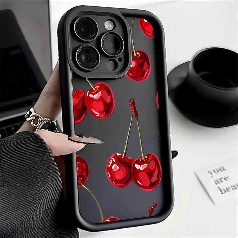 Funda de teléfono con estampado de cereza y rojo vino de lujo para Samsung Galaxy S25 S24 S23 S22 S21 Ultra Plus FE A26 A33 A25 A16 A56 A06 A24