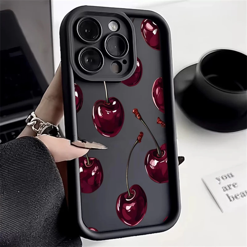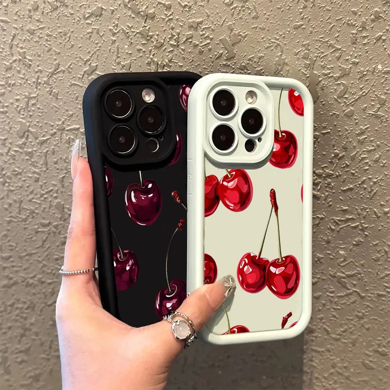 Funda de teléfono con estampado de cereza y rojo vino de lujo para Samsung Galaxy S25 S24 S23 S22 S21 Ultra Plus FE A26 A33 A25 A16 A56 A06 A24