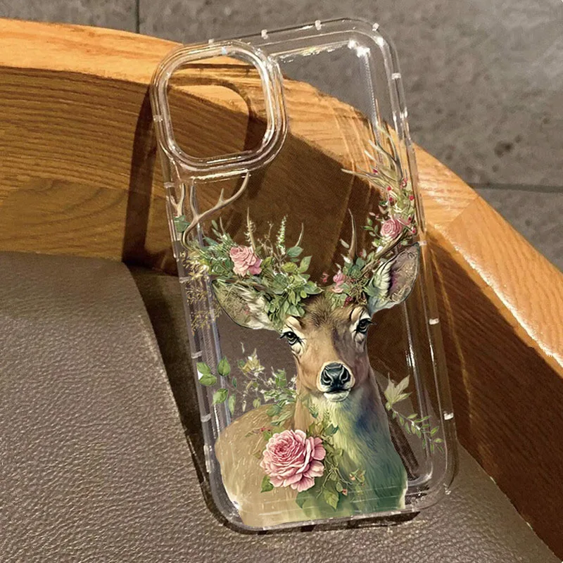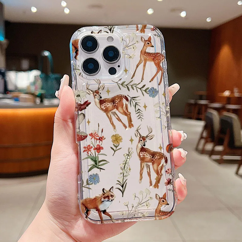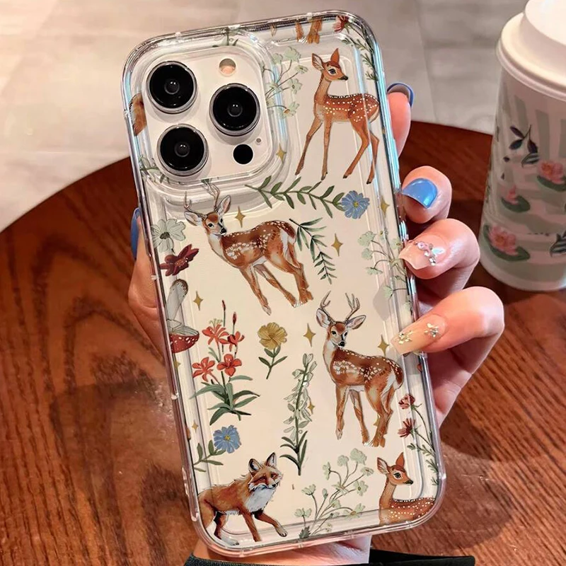 Funda de teléfono con estampado de ciervo Sika de plantas para Xiaomi Mi 14 13T 13 12T Pro, funda suave a prueba de golpes para Poco F5 F7 X6 Pro 5G