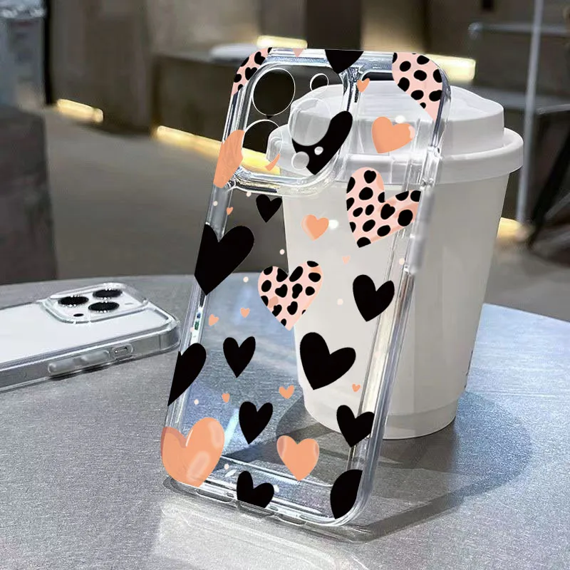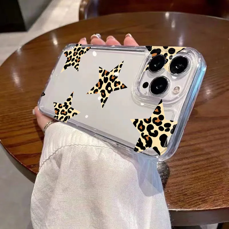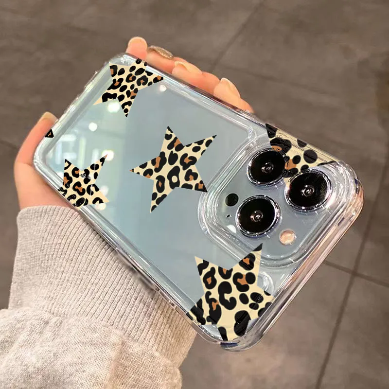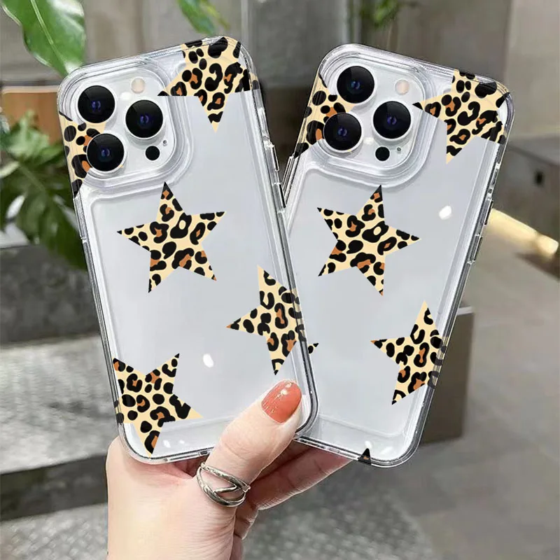 Funda de teléfono con estampado de corazón y estrella con estampado de leopardo para Xiaomi Redmi Note 14 13 12 Pro Plus 5G 12S 11 10 Redmi 13 12 12C 13C 14C