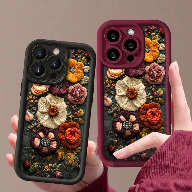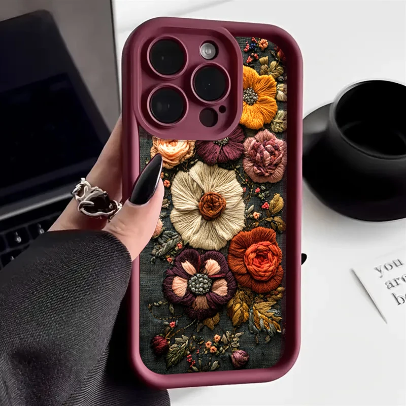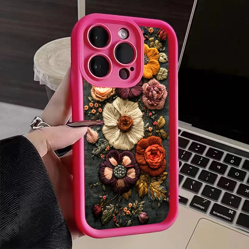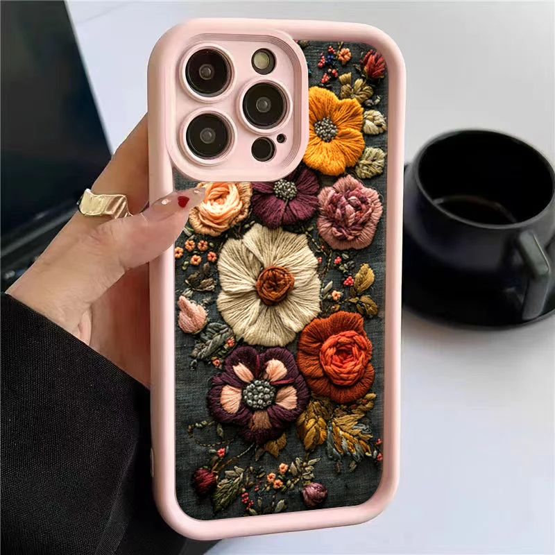 Comprar Funda de teléfono con estampado Floral y aspecto bordado Retro para iPhone 17 16 15 Pro Max 14 13 12 11 XS X XR 7 8 Plus 16E Air Cover