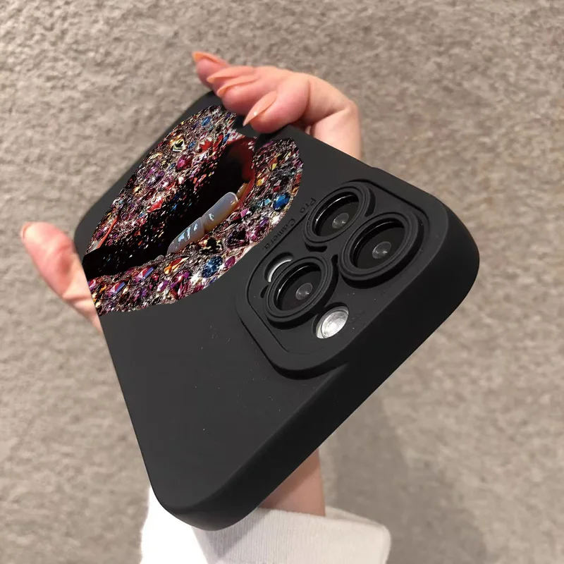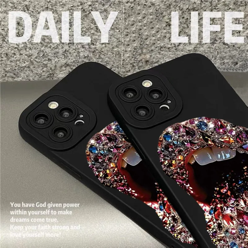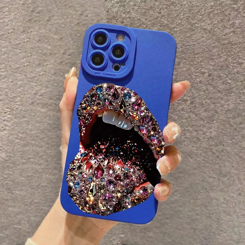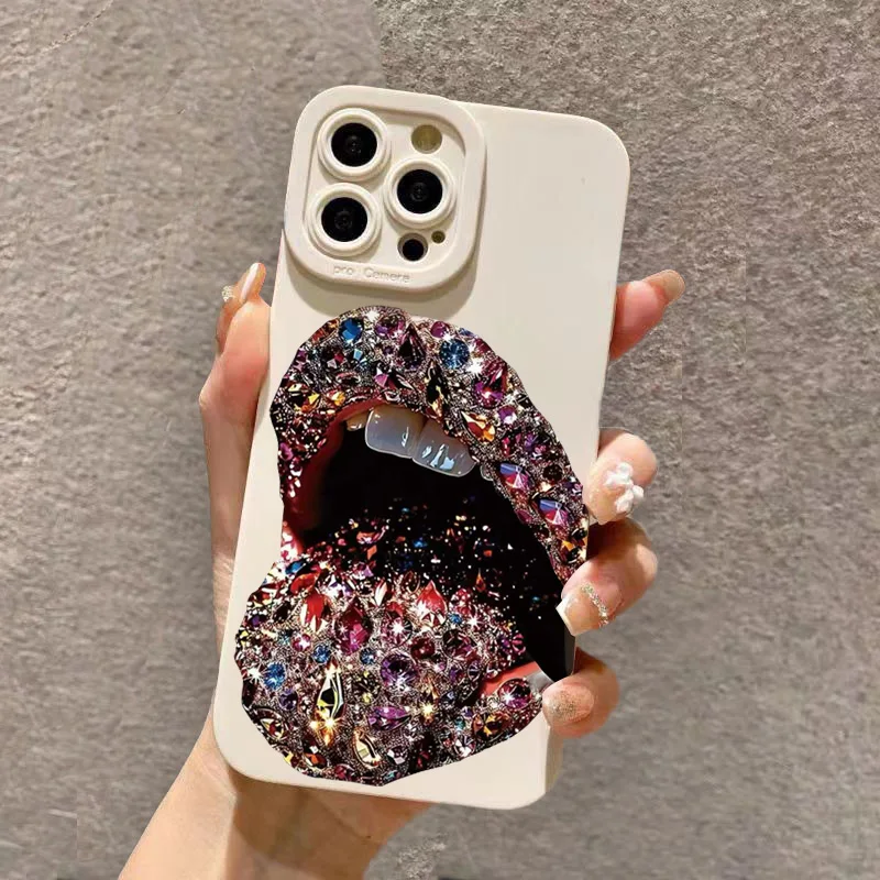 Funda de teléfono con estampado de labios de diamante Sexy para iPhone 17 16 15 14 13 12 11 Pro Max XS X XR 7 8 Plus 16E Air cubierta de parachoques suave a prueba de golpes