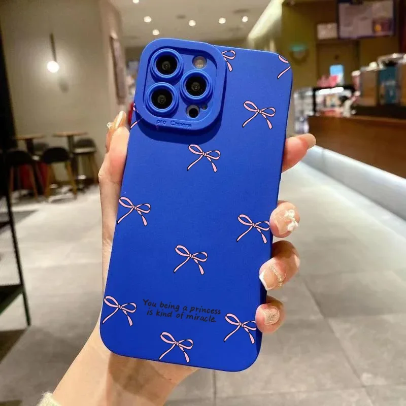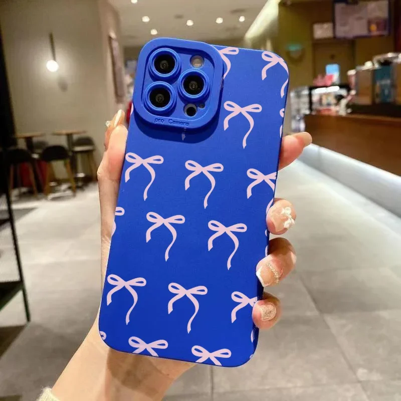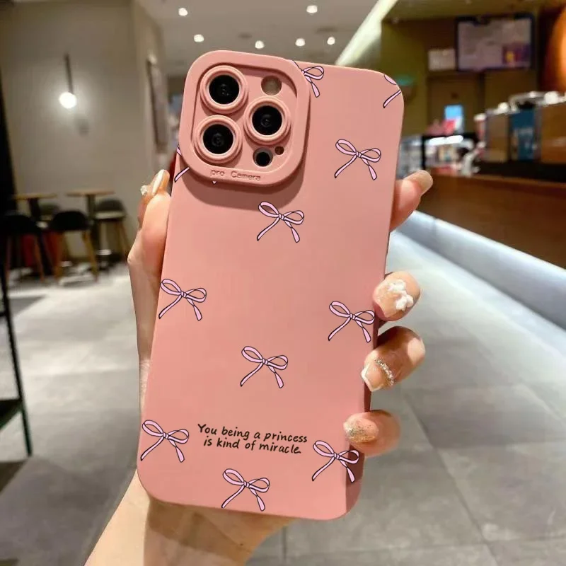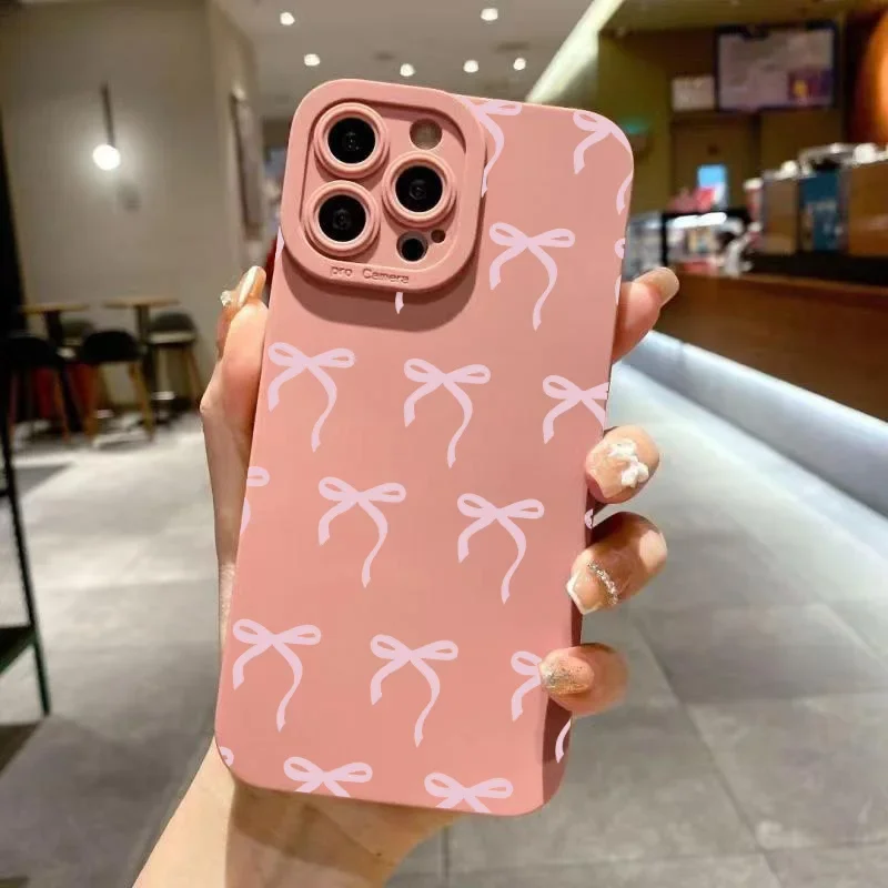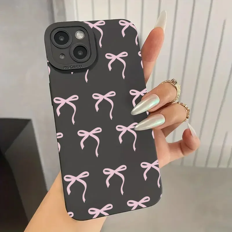 Funda de teléfono con estampado de lazo rosa para iPhone 16 Pro Max 15 14 13 12 11 XS X XR 7 8 Plus SE 2020 2022, funda de silicona TPU suave a prueba de golpes