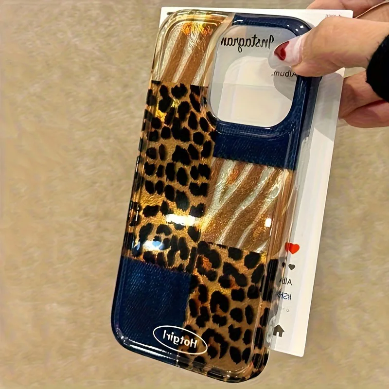 Funda de teléfono con estampado de leopardo azul vaquero Retro para iPhone 17 16 15 14 13 12 11 Pro Max XS X XR 7 8 Plus 16E 17 cubierta de parachoques transparente de aire