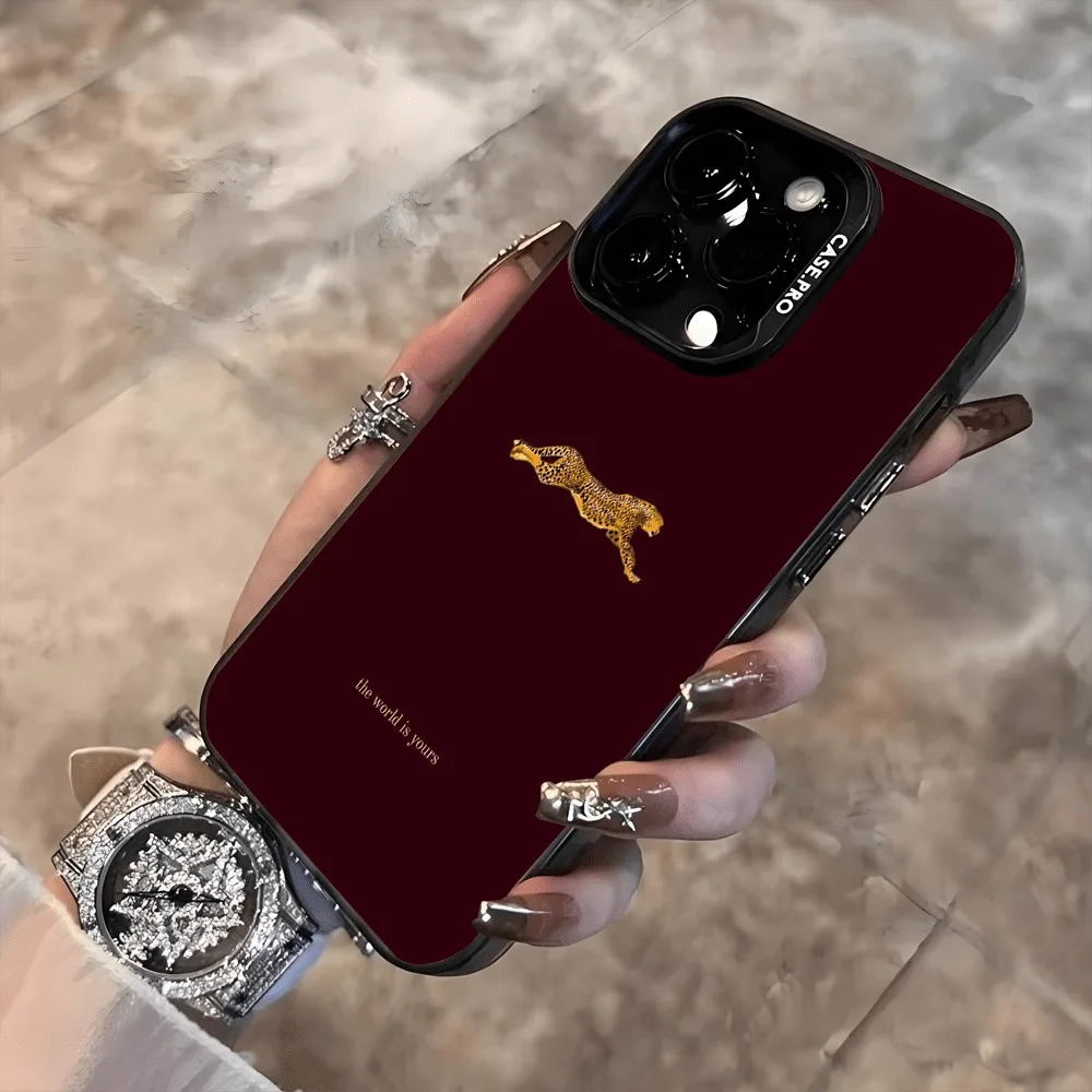 Funda de teléfono con estampado de leopardo, color rojo vino, para Samsung Galaxy S25 S24 Ultra S23 FE S22 Plus A16 A26 A36 A56 A25 A55 A54 A53