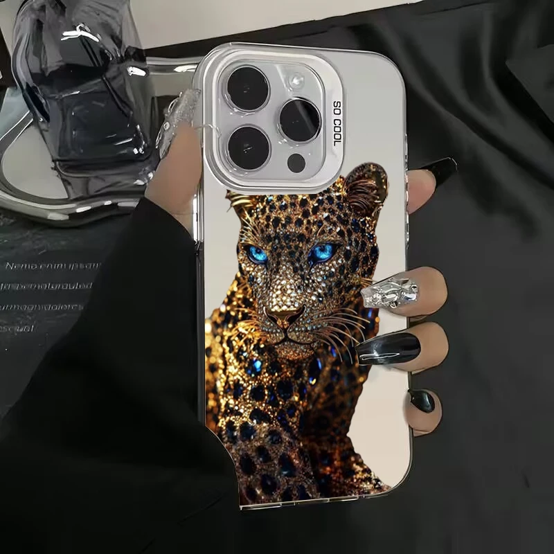 Funda de teléfono con estampado de leopardo dorado y plateado para Samsung Galaxy S25 S24 S23 S22 Ultra Plus FE A55 A56 A53 A06 A35 A15 A16 5G