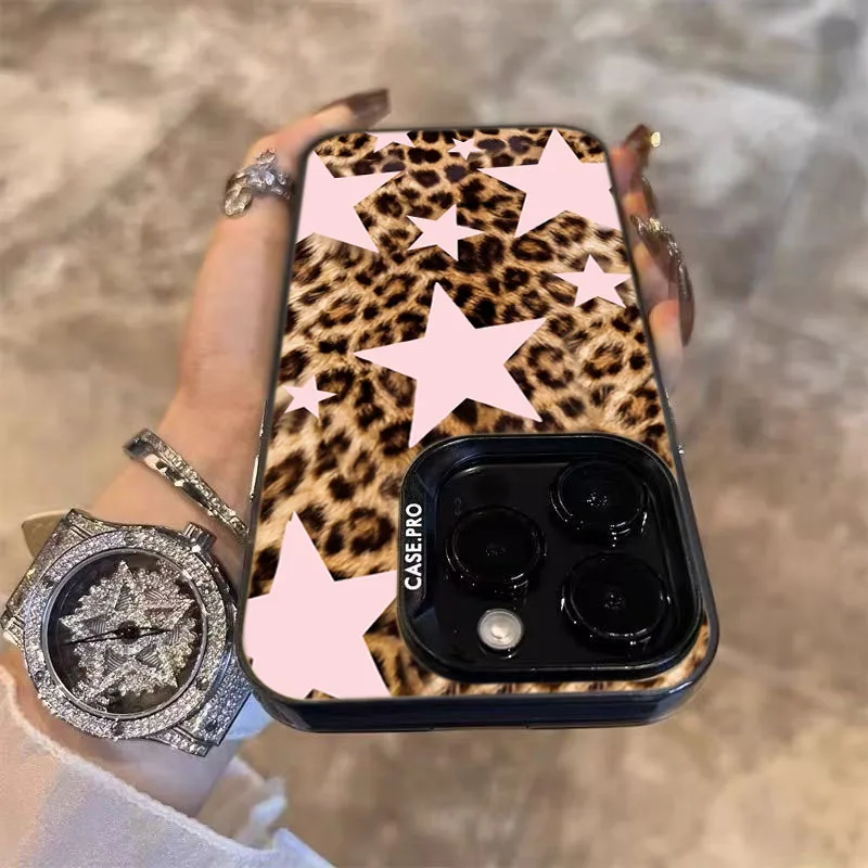 Funda de teléfono con estampado de leopardo y estrella rosa para Samsung Galaxy A16 A15 A14 A26 A25 A24 A36 A56 S25 S24 S23 S21 FE S22 Ultra Plus 5G