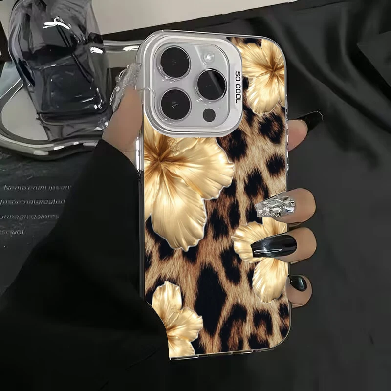 Funda de teléfono con estampado de leopardo y flor de lirio dorado para Xiaomi Redmi Note 14 4G 11 10 12 13 Pro Plus 5G Redmi 15C 14C 13C 12C 4G