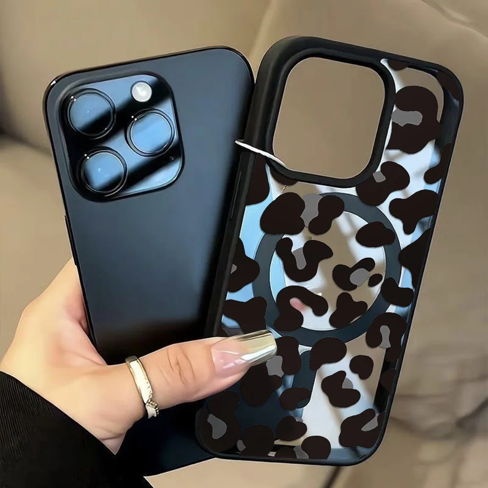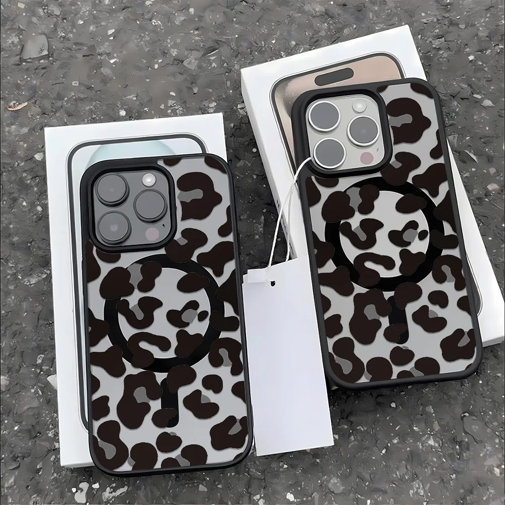 Funda de teléfono con estampado de leopardo magnético con cordón de lujo para iPhone 17 16 Pro Max 13 11 15 14 12 17promax cubierta mate acrílica a prueba de golpes