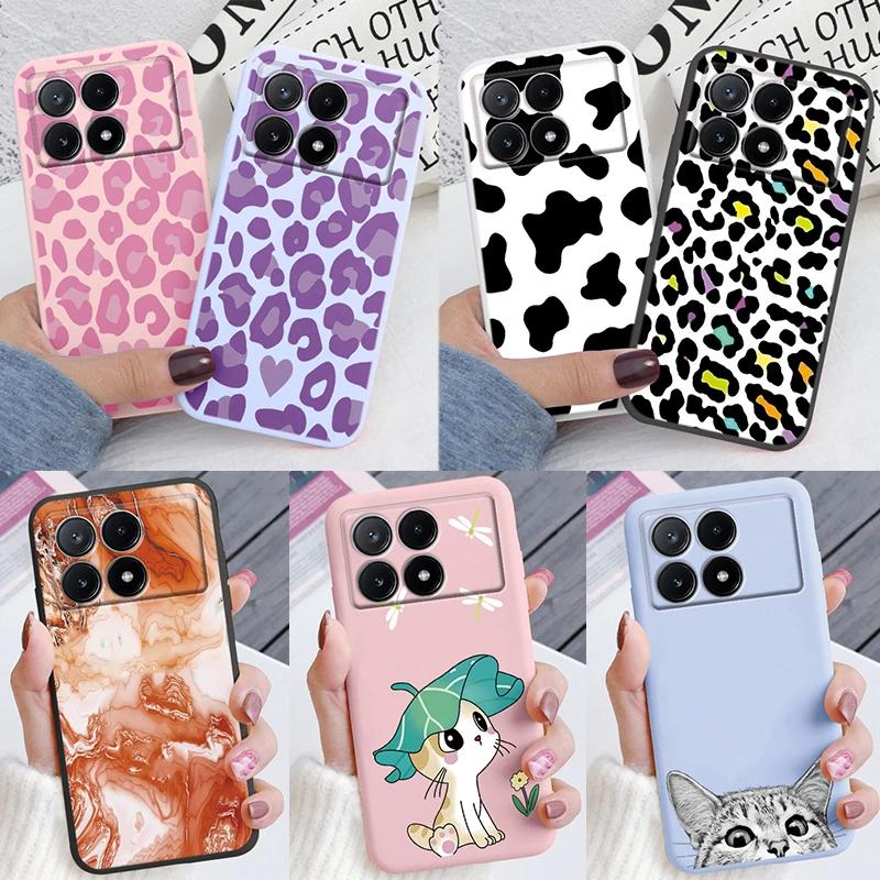 Funda de teléfono con estampado de leopardo para Poco F6 Pro, cubierta de TPU de silicona suave, mármol colorido, marrón, para Xiaomi PocoF6 F 6 Pro Coque