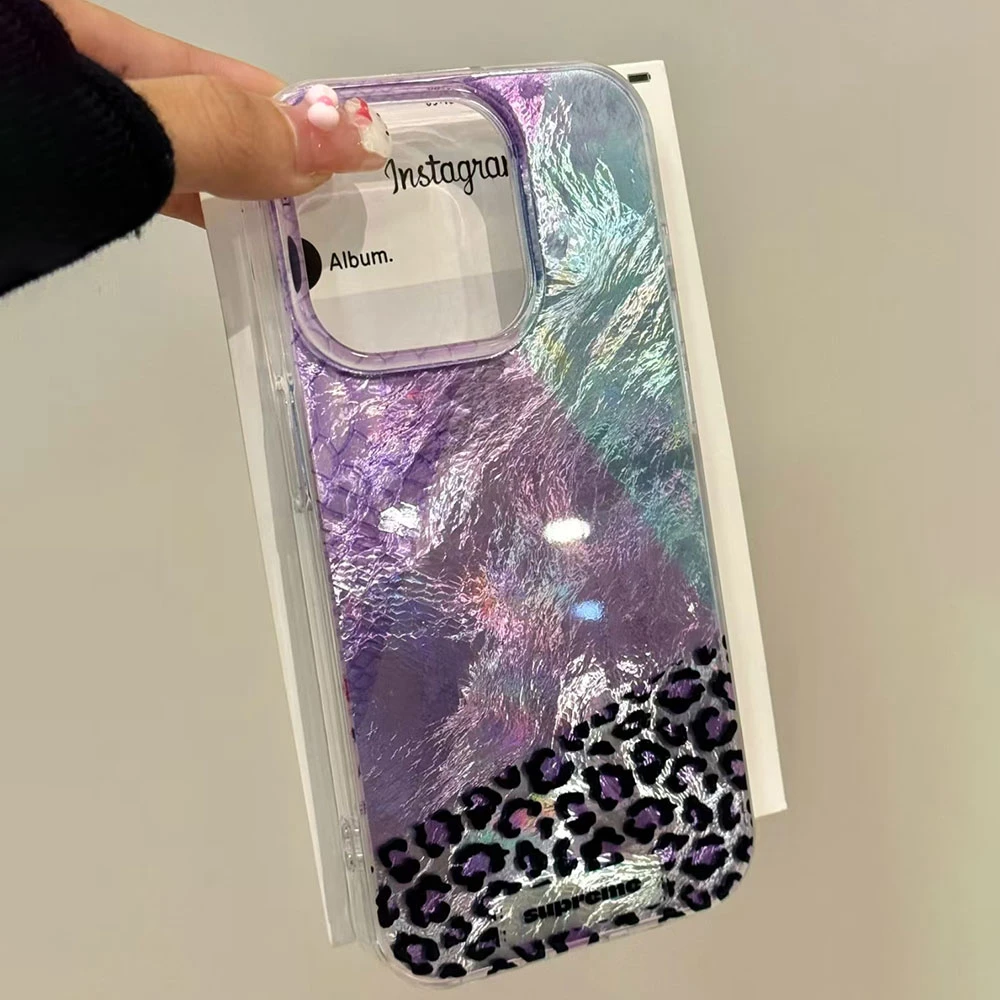 Comprar Funda de teléfono con estampado de leopardo púrpura para mujer, funda para iphone 16 15 14 7 8 Plus 13 11 12 Pro Max X XS XR SE 2022 2020 16e