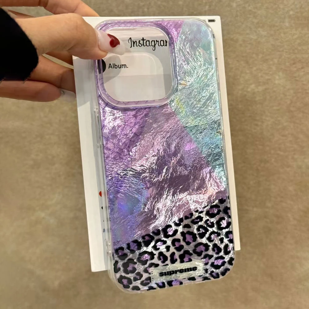 Comprar Funda de teléfono con estampado de leopardo púrpura para mujer, funda para iphone 16 15 14 7 8 Plus 13 11 12 Pro Max X XS XR SE 2022 2020 16e