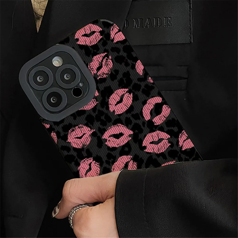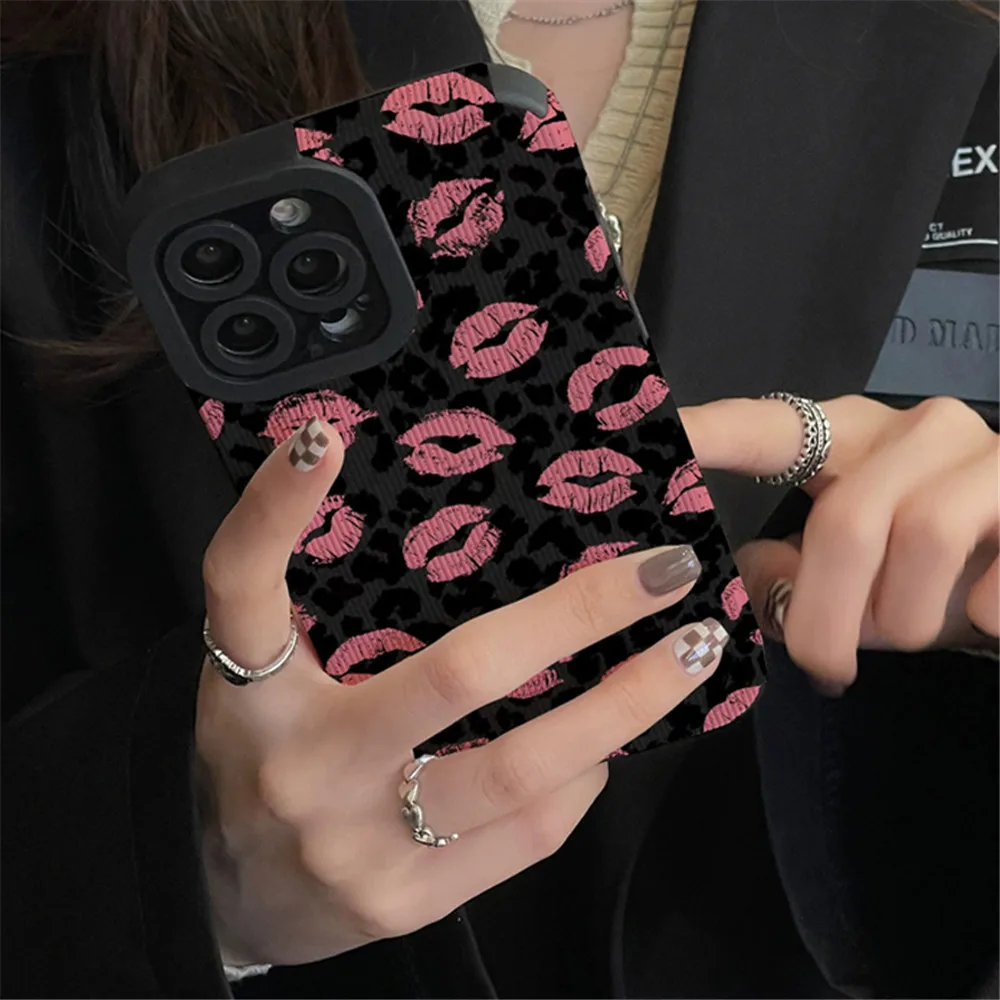 Comprar Funda de teléfono con estampado de leopardo y beso de labios rosas, carcasa de silicona suave para iPhone 14, 13, 12, 11 Pro Max, 7, 8 Plus, X, XS, XR, SE