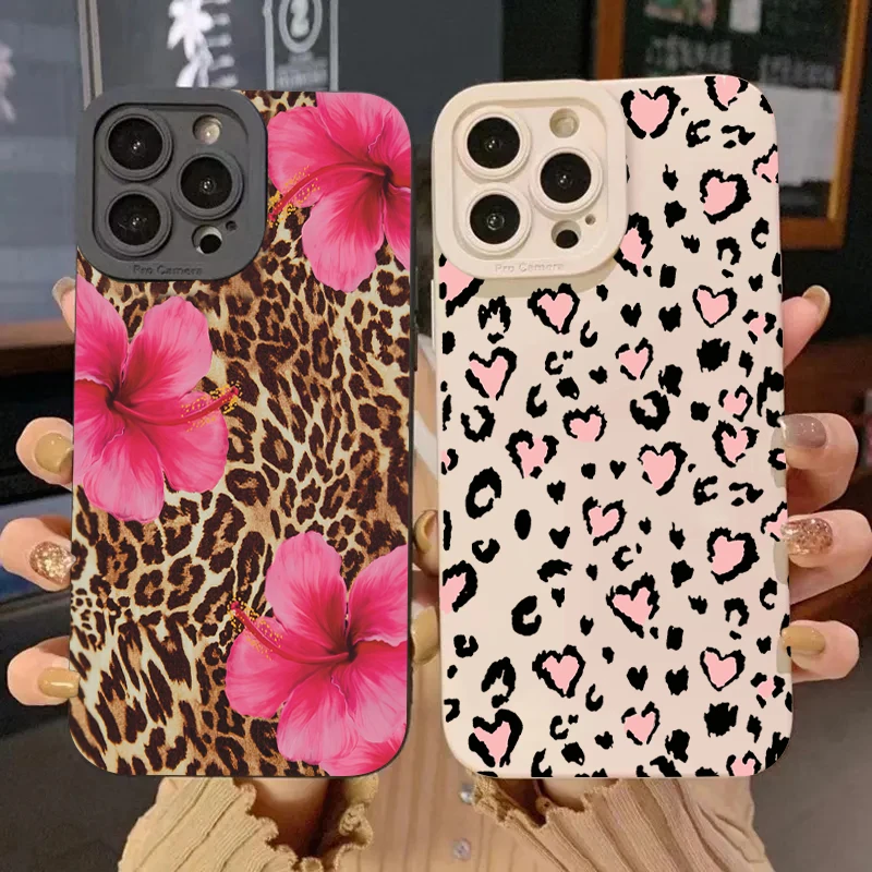 Leopard Print Flowers Phone Case For Xiaomi Mi 15 14T 13T 12T Pro 14 13 11 Lite 5G NE Poco F6 F5 X5 M6 X7 Pro Silicone Cover