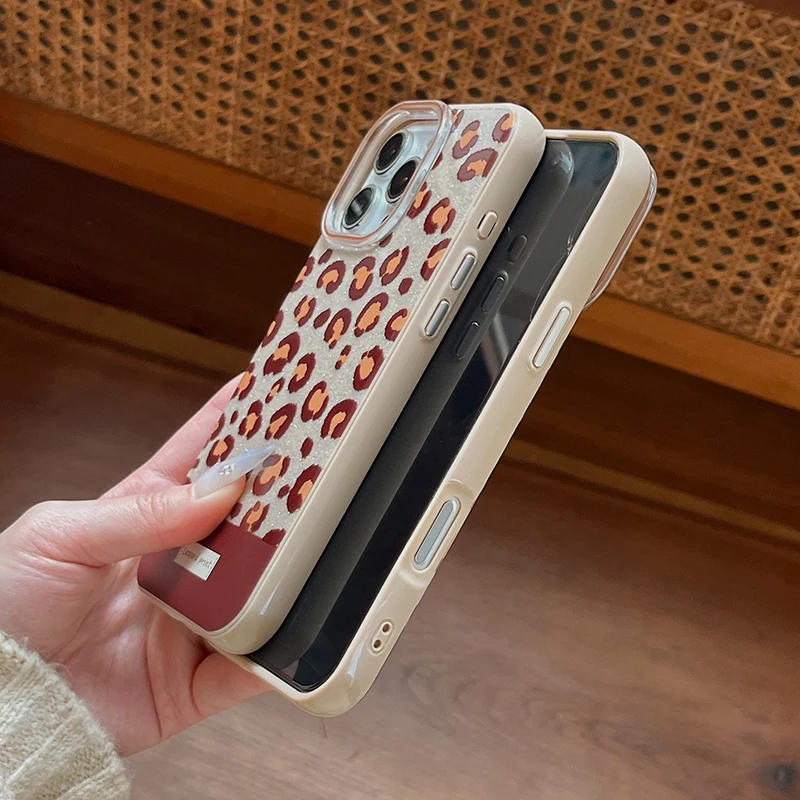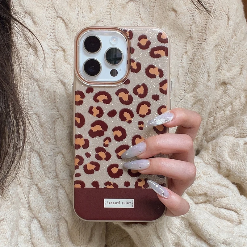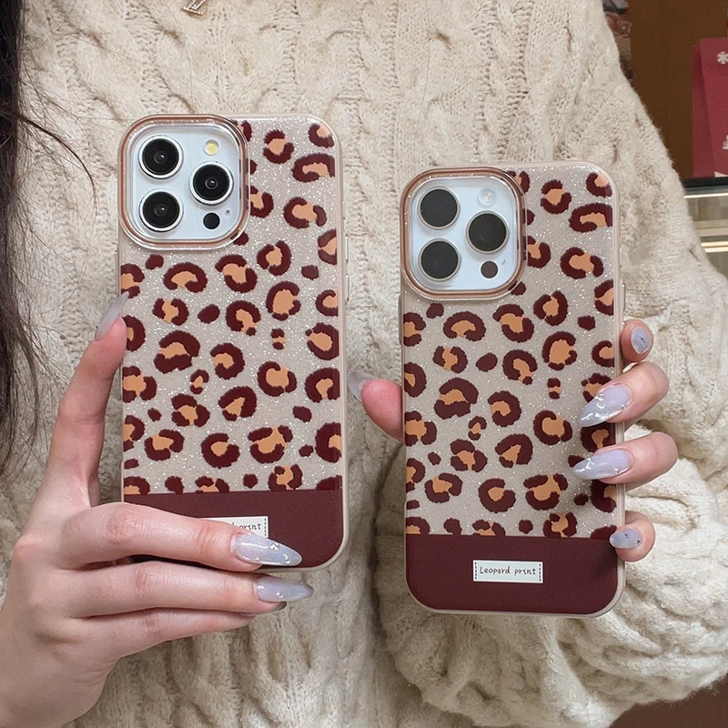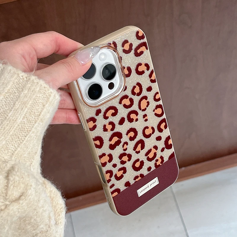 Cool Shiny Bling Glitter Leopard Print Phone Case For iPhone 16 15 13 14 Pro Max IMD Silicone Back Cover Shell