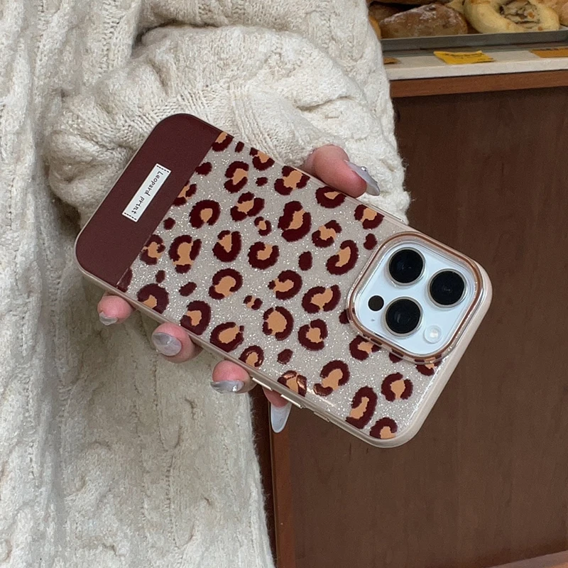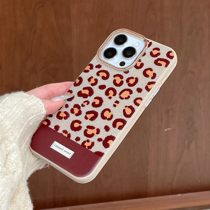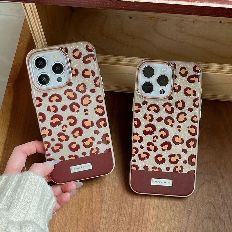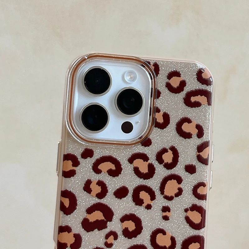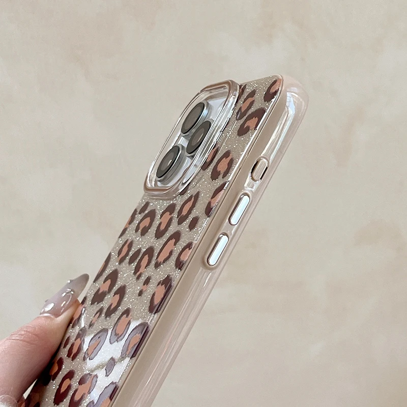 Comprar Funda de teléfono con estampado de leopardo y purpurina brillante para iPhone 16 15 13 14 Pro Max IMD, carcasa trasera de silicona