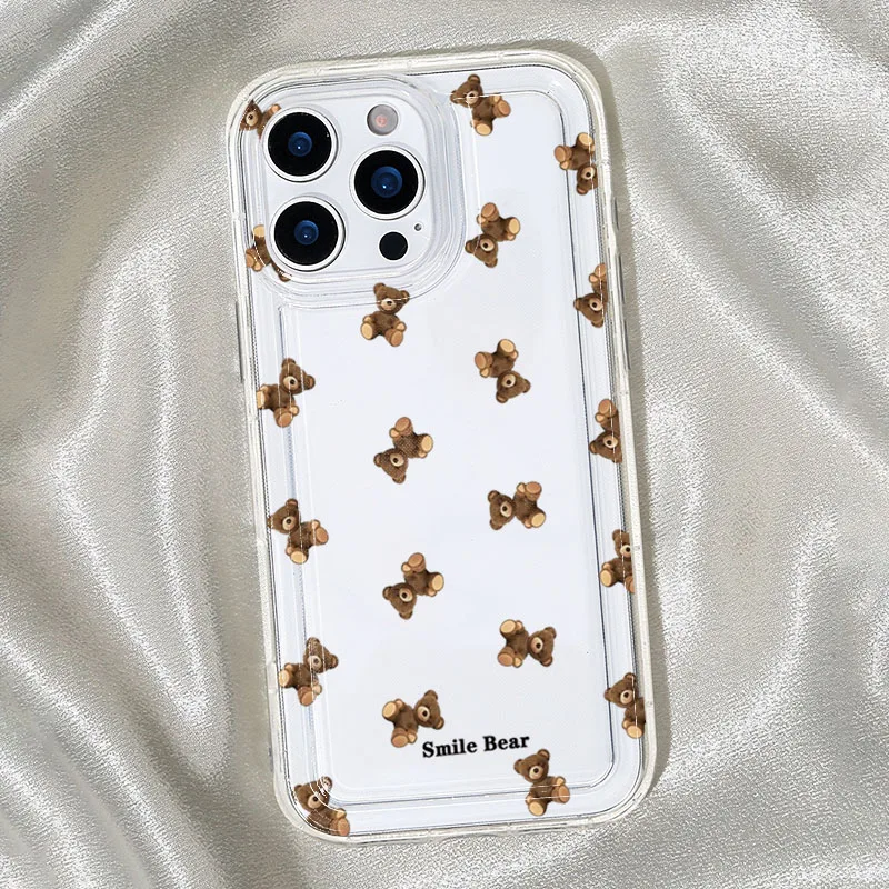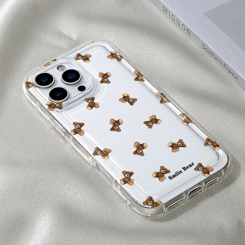 Funda de teléfono con estampado de oso de flores para iPhone 16 15 13 12 11 Pro Max 16E 15 Plus 13 Mini X XR XS 7 8 Plus SE2 funda suave de dibujos animados