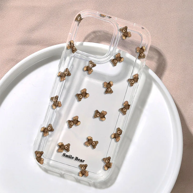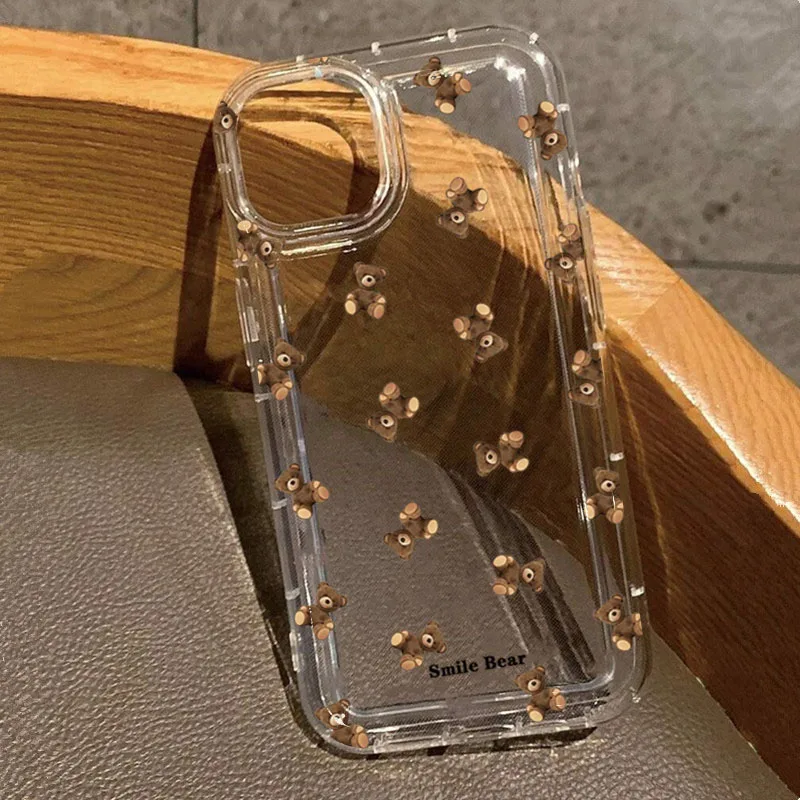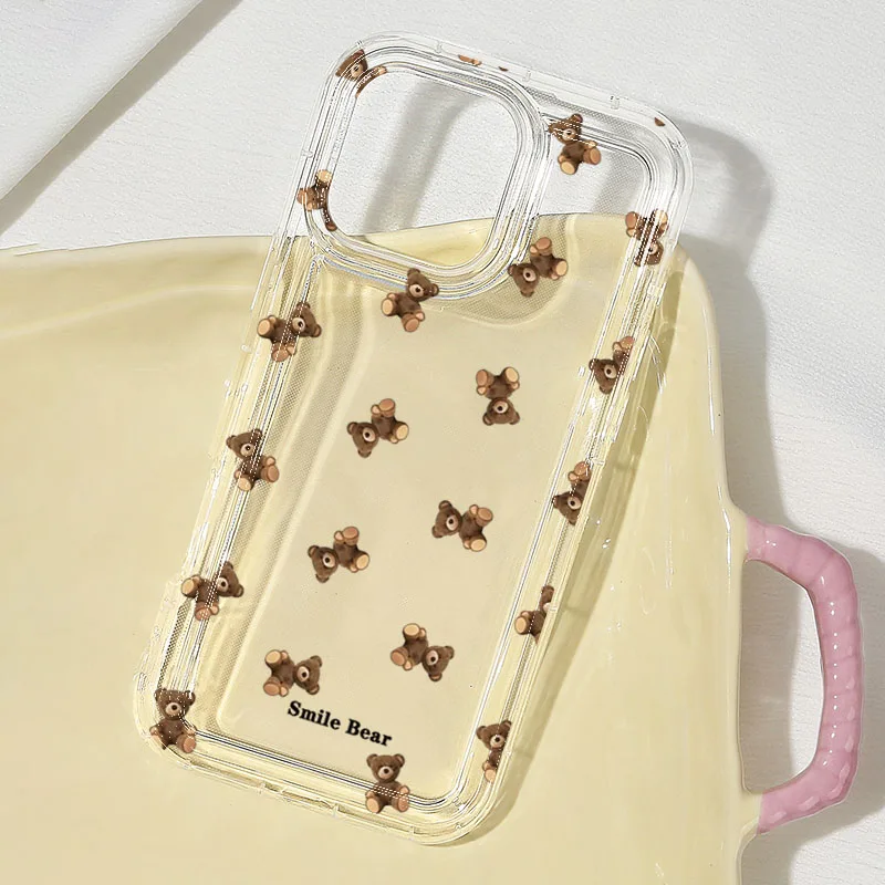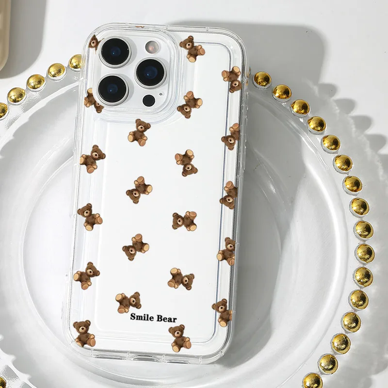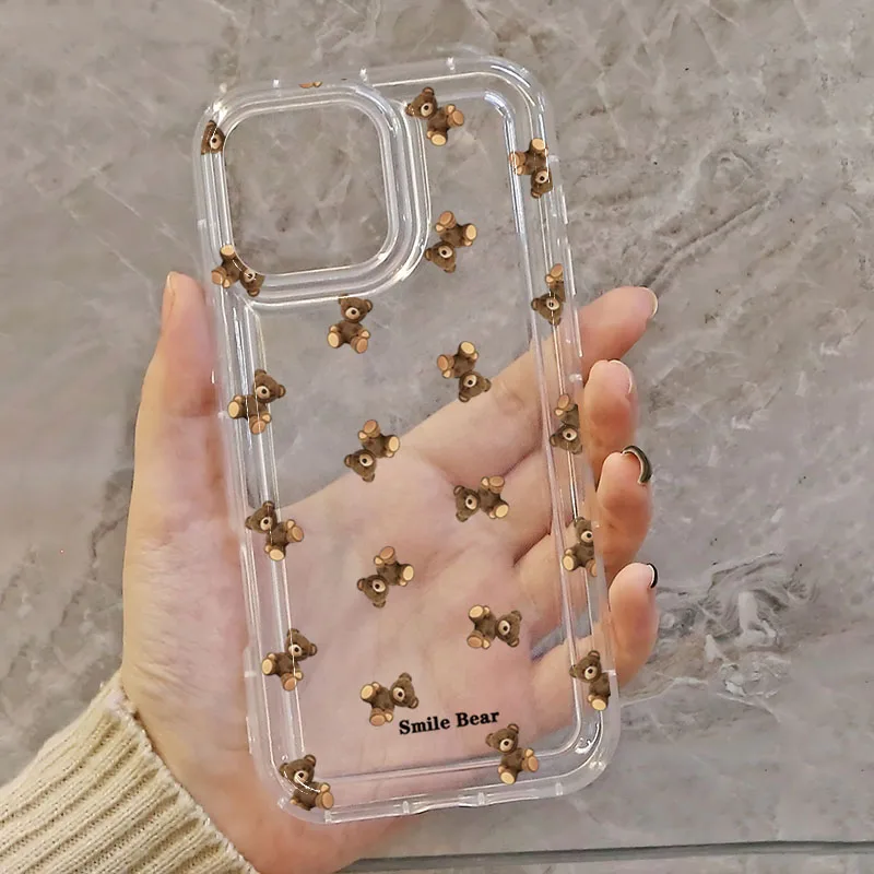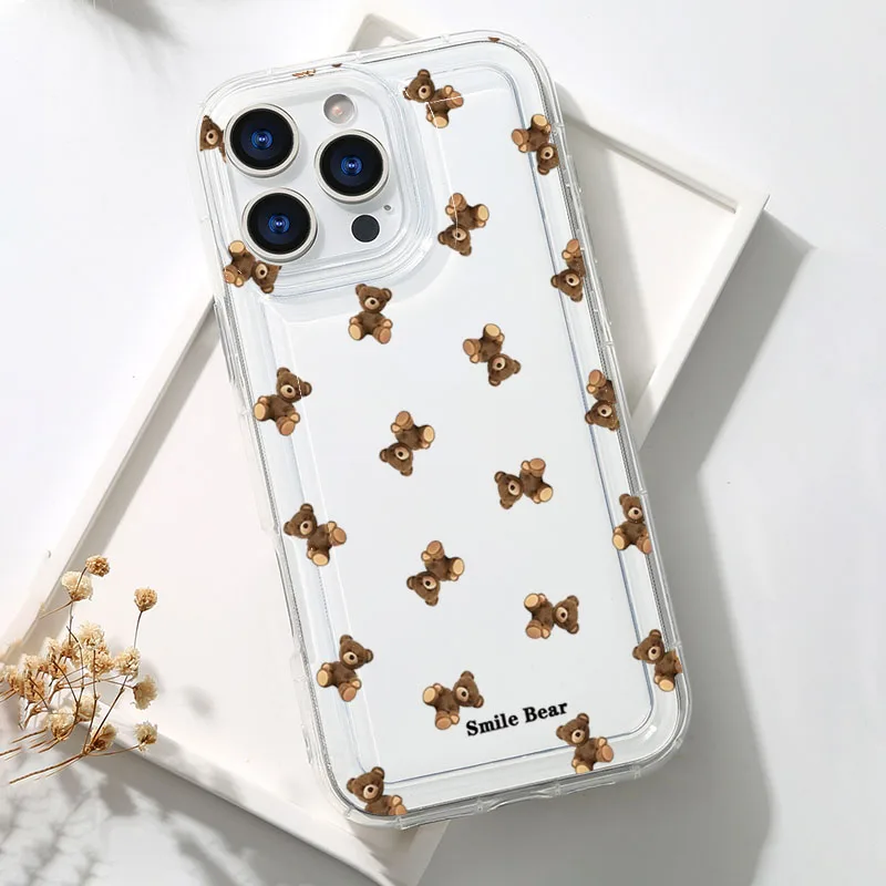 Funda de teléfono con estampado de oso y flores para iPhone 16 15 13 12 11 Pro Max 16E 15 Plus 13 Mini X XR XS 7 8 Plus SE2, funda suave de dibujos animados