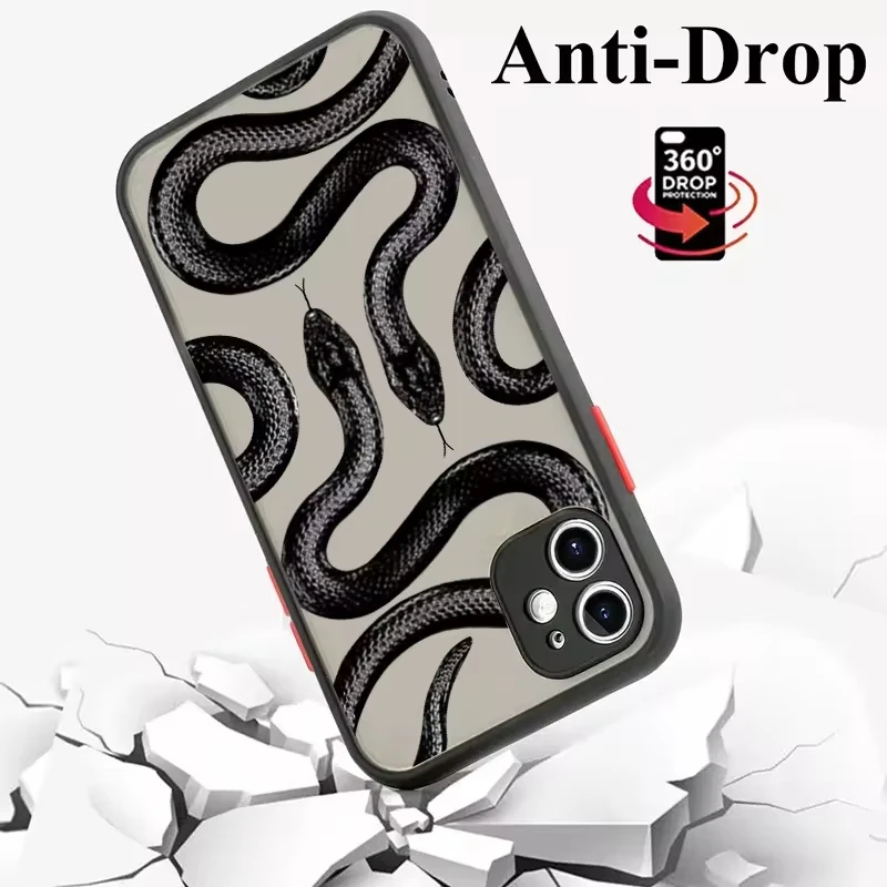 Funda de teléfono con estampado de serpiente para iPhone, carcasa dura mate para iPhone 16, 15, 14 Pro Max, 11, 12, 13 Pro Max, Mini, 7, 8 Plus, XR, X, XS, SE2