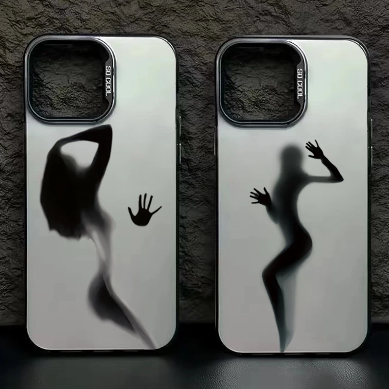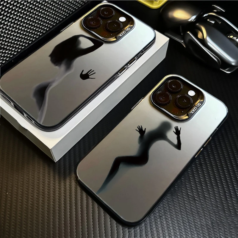 Funda de teléfono Sexy negra estilo fantasma para iPhone 16E 16 15 14 13 12 11 Pro Max XS X XR 8 7 Plus SE2 cubierta trasera a prueba de golpes chapada