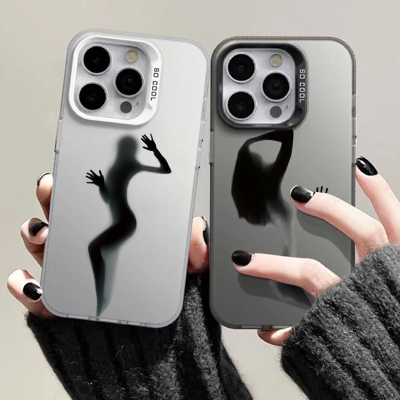 Funda de teléfono estilo fantasma negro Sexy para iPhone 16E 16 15 14 13 12 11 Pro Max XS X XR 8 7 Plus SE2 cubierta trasera chapada a prueba de golpes