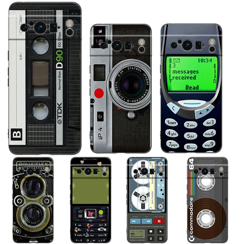 Comprar Funda de teléfono de estilo Retro con cinta de casete Vintage para Google Pixel 8 7 6 Pro 6A 7A 5G, funda negra de silicona suave a prueba de golpes de TPU