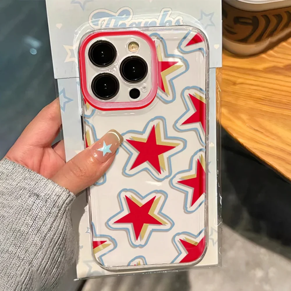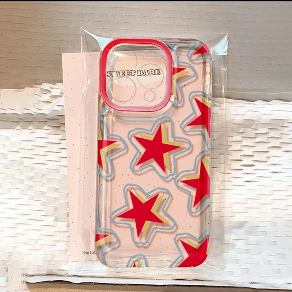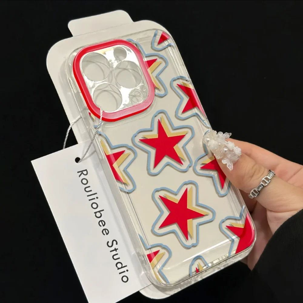 Comprar Funda de teléfono de estrellas rojas de tendencia coreana para Oppo Realme C63 C53 10 9 C30 Reno13 Reno12 Reno11 Reno10 Reno8 Reno7 Reno6 F 5G cubierta transparente