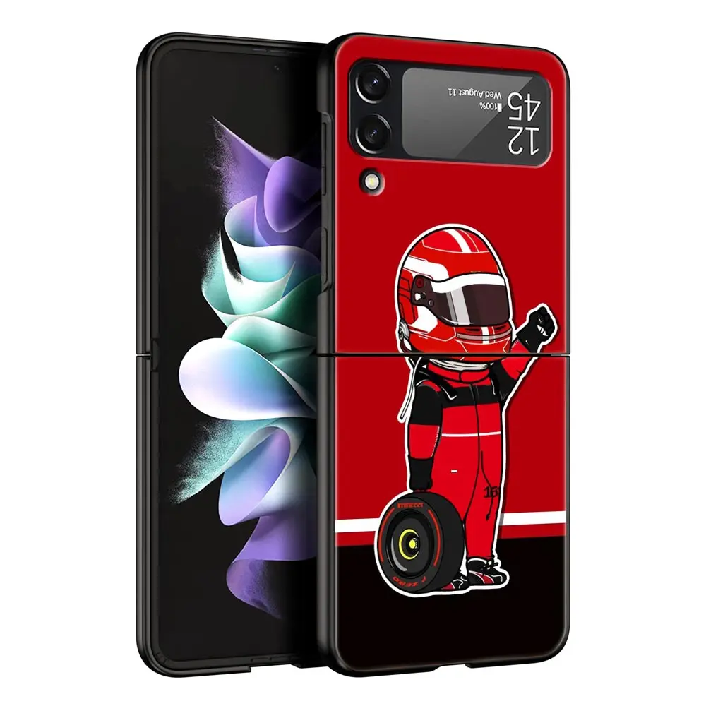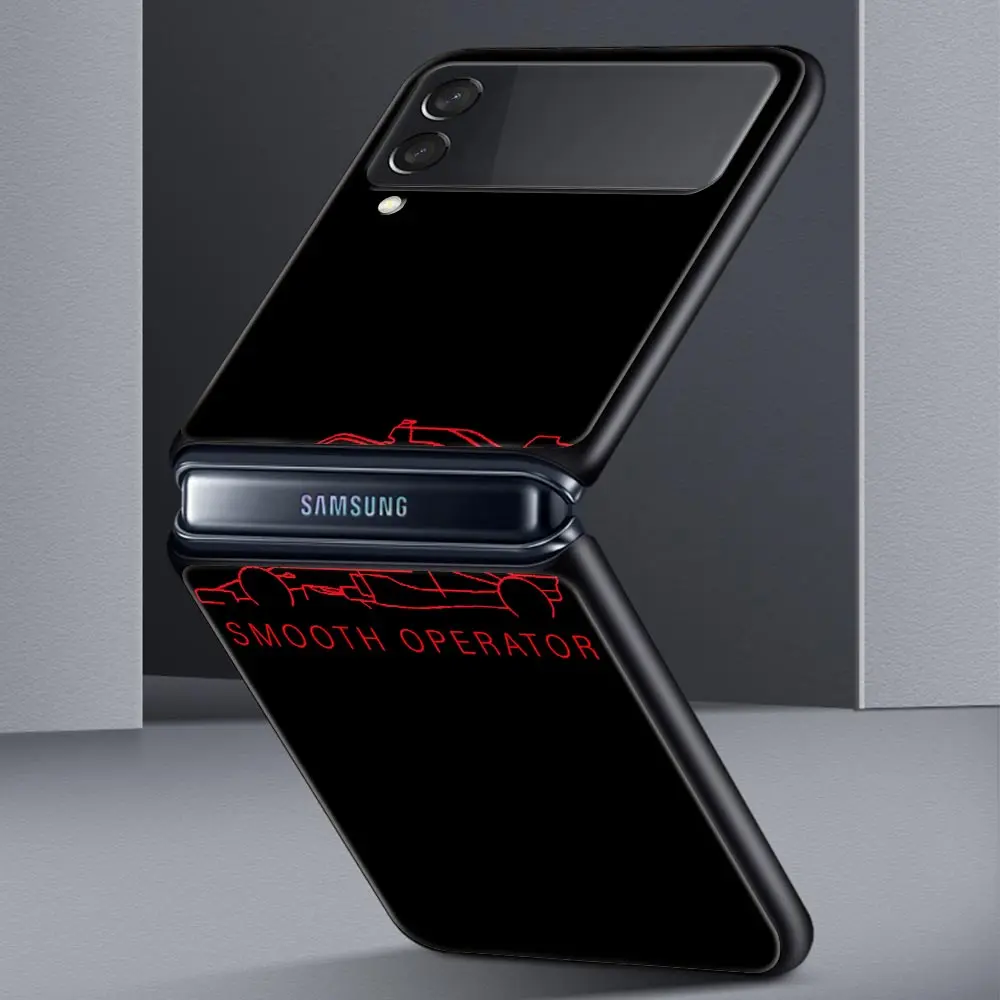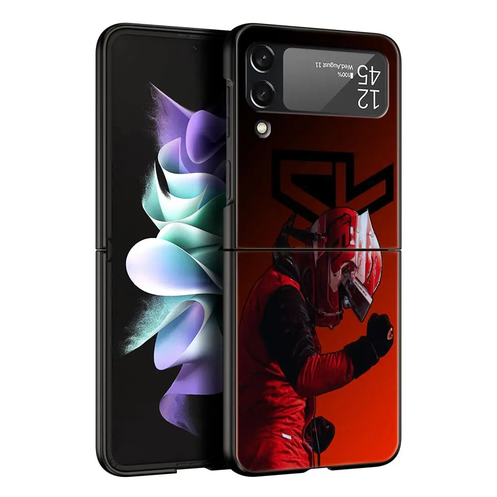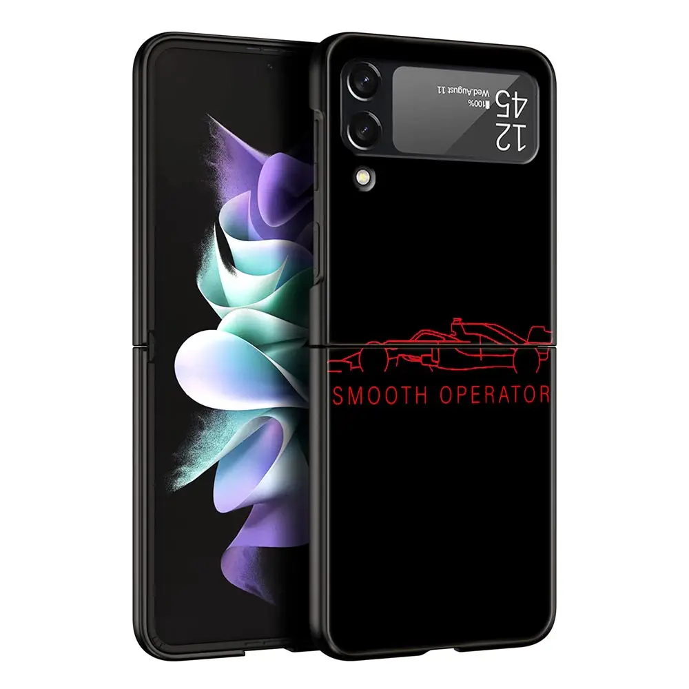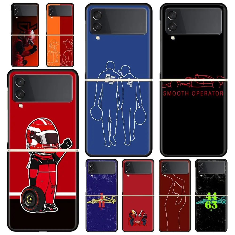 Comprar Funda de teléfono F1 número 33 para Samsung Galaxy Z Flip3 Flip4 Flip5 PC carcasa de parachoques para Z Flip 3 4 5 cubierta trasera plegable dura negra