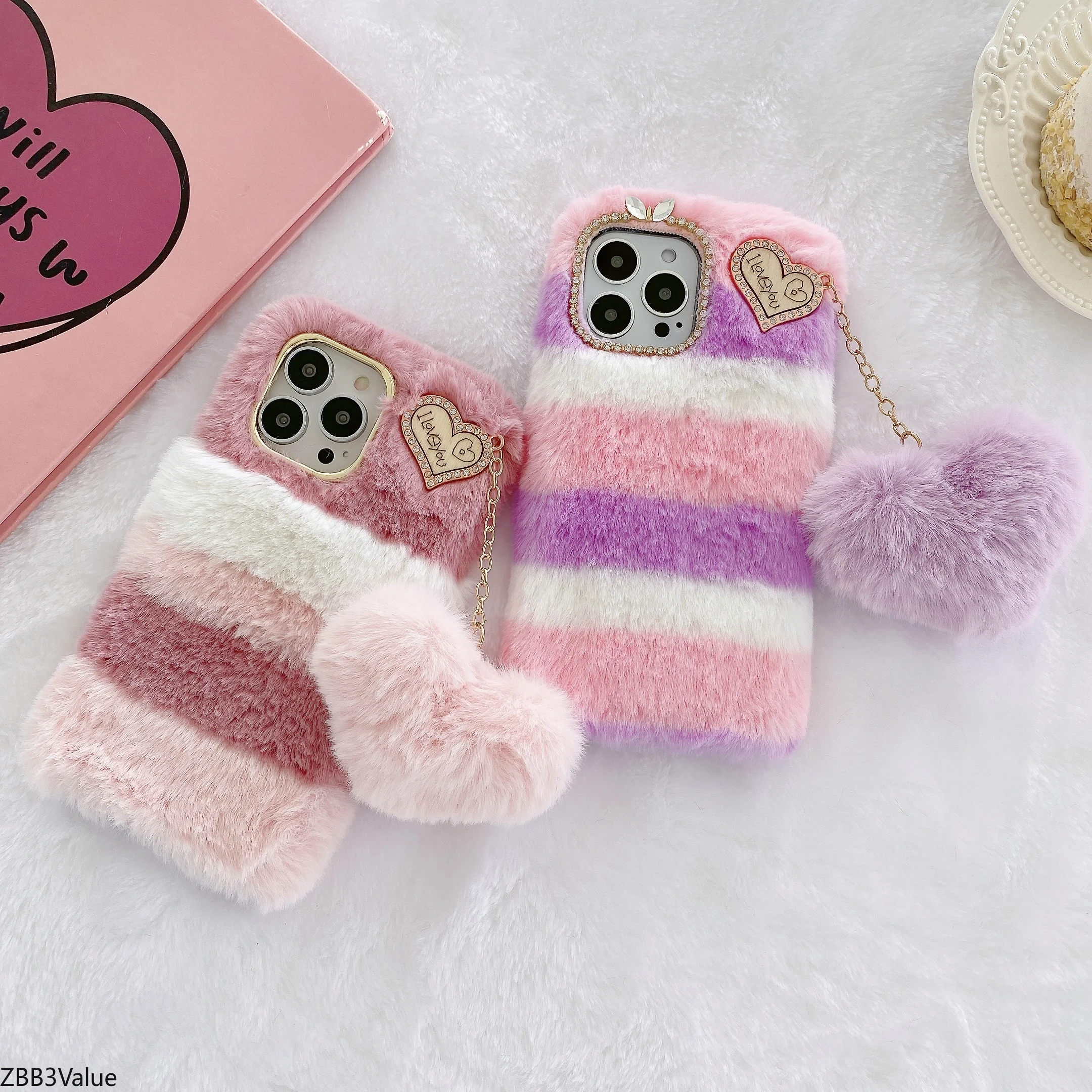 Funda de teléfono de felpa con colgante de corazón para Motorola Moto C Plus G4 Pro G Stylus Power One E4 G5S X4 E5 Z2 Play, funda de teléfono de felpa