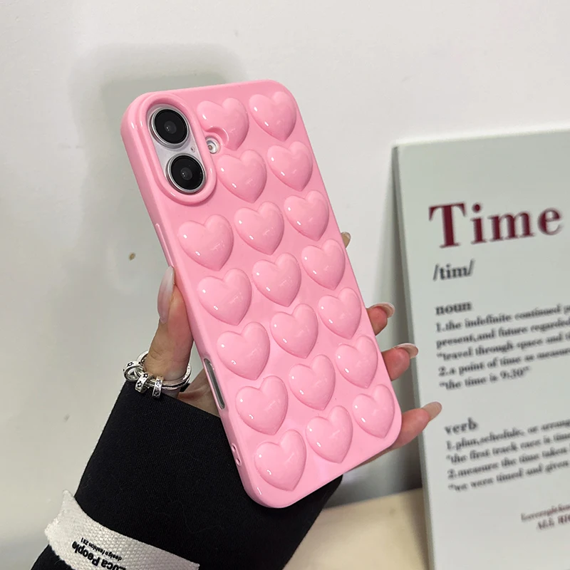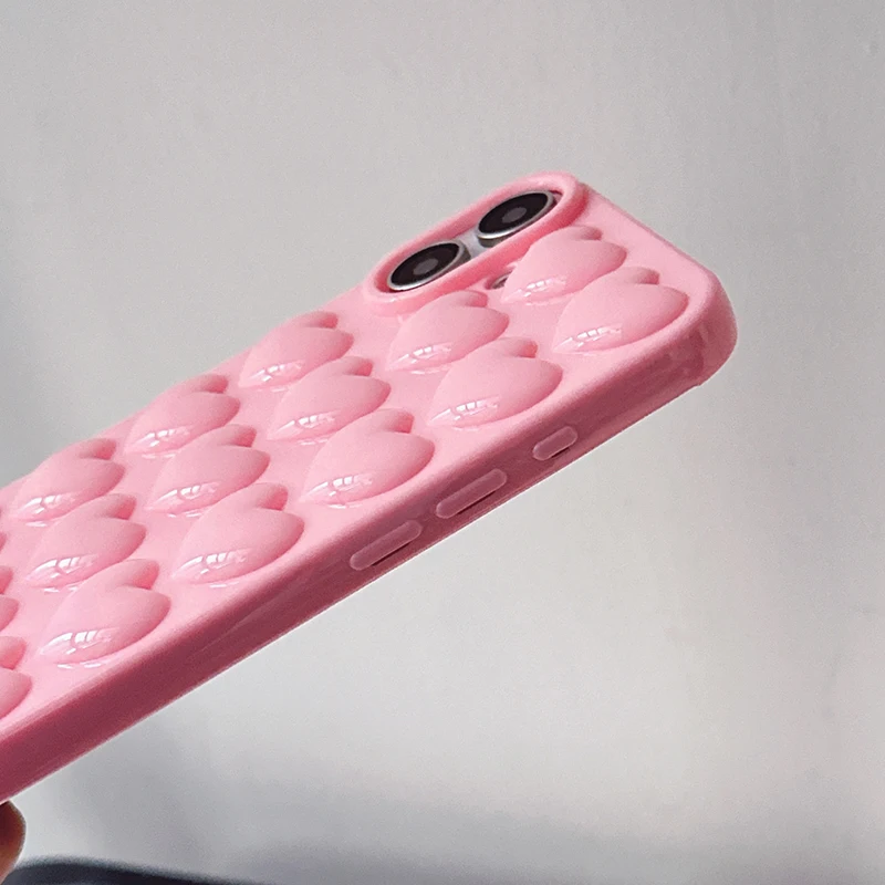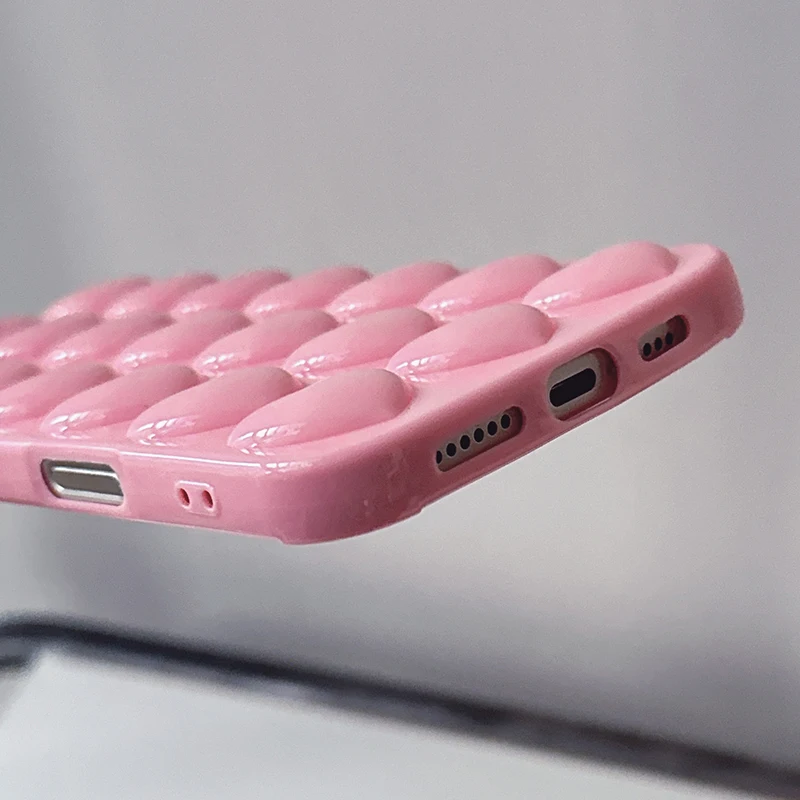 Funda de teléfono niña bonita con corazón de burbuja 3D rosa para iPhone 17 Air 16 15 14 Plus 13 12 11 Pro Max Funda trasera de silicona suave