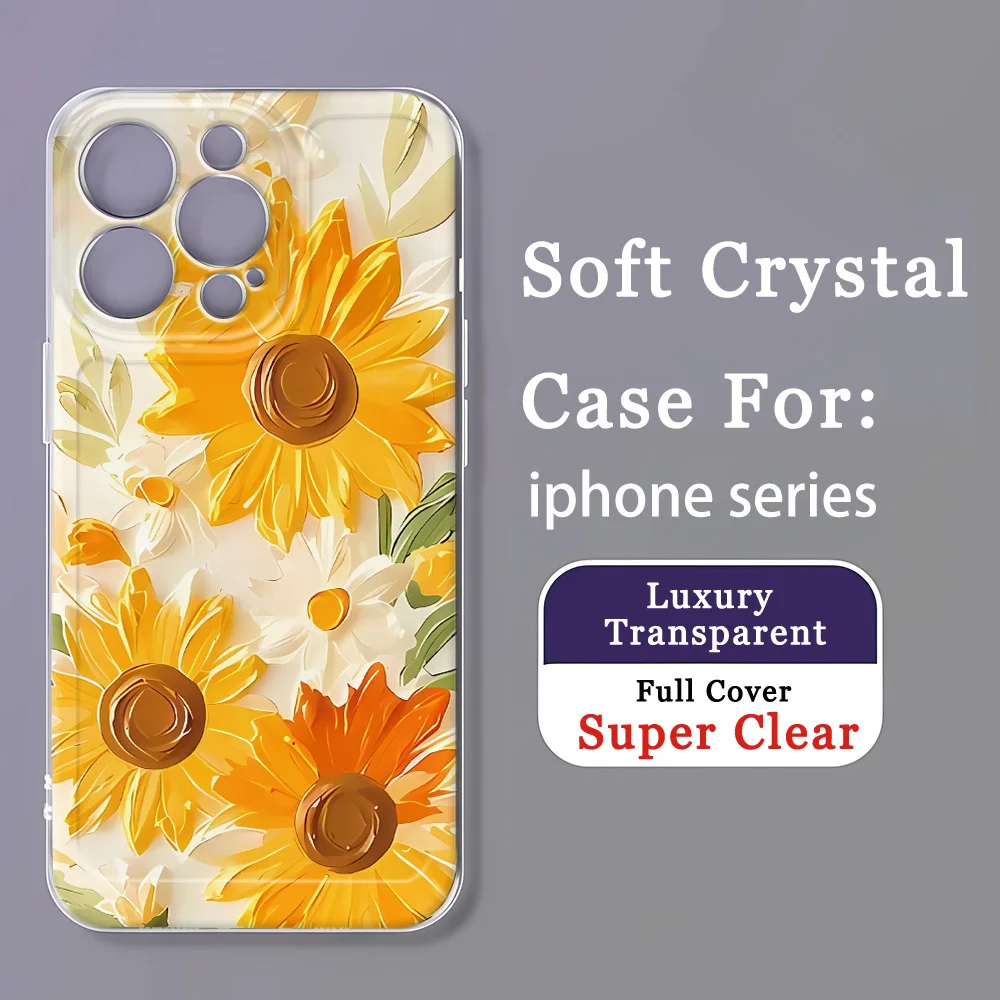 Comprar Funda de teléfono con flor de crisantemo amarillo para iPhone 16 Pro, funda para iPhone 13 11 15 12 14 Pro Max 16E, funda a prueba de golpes