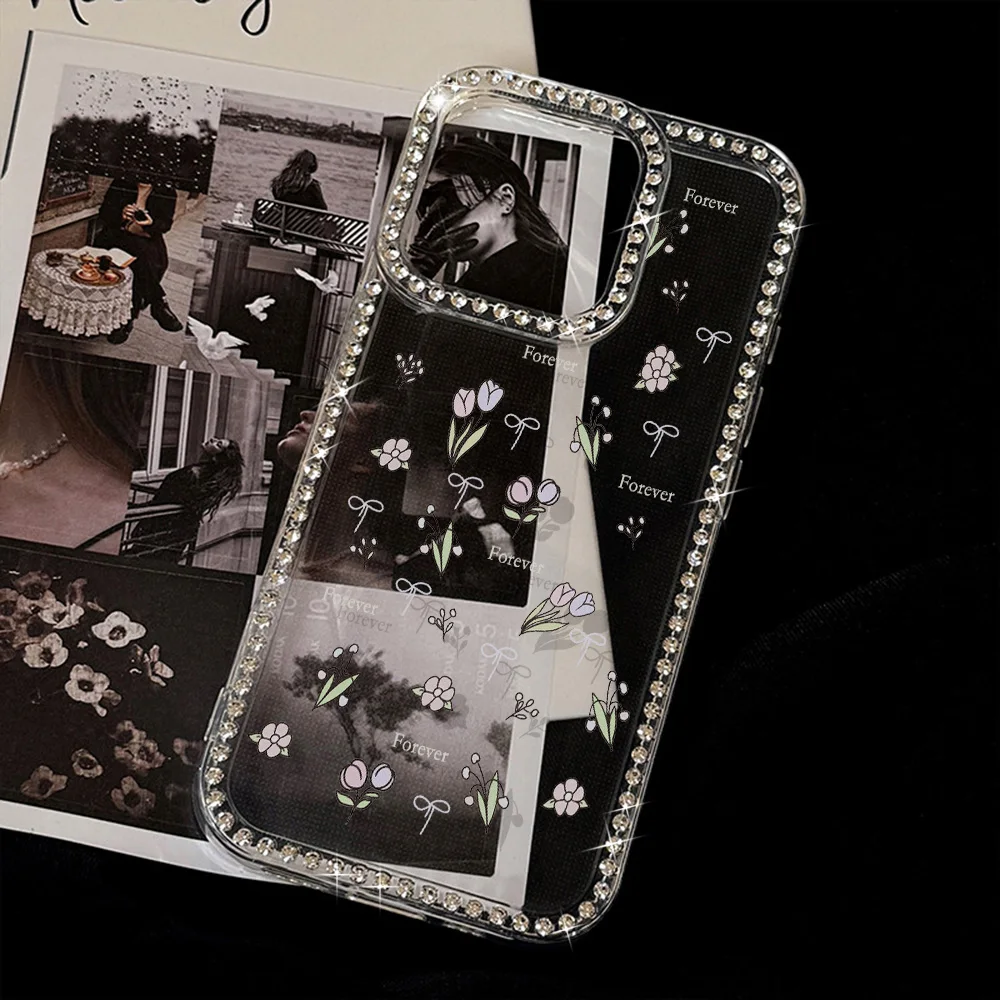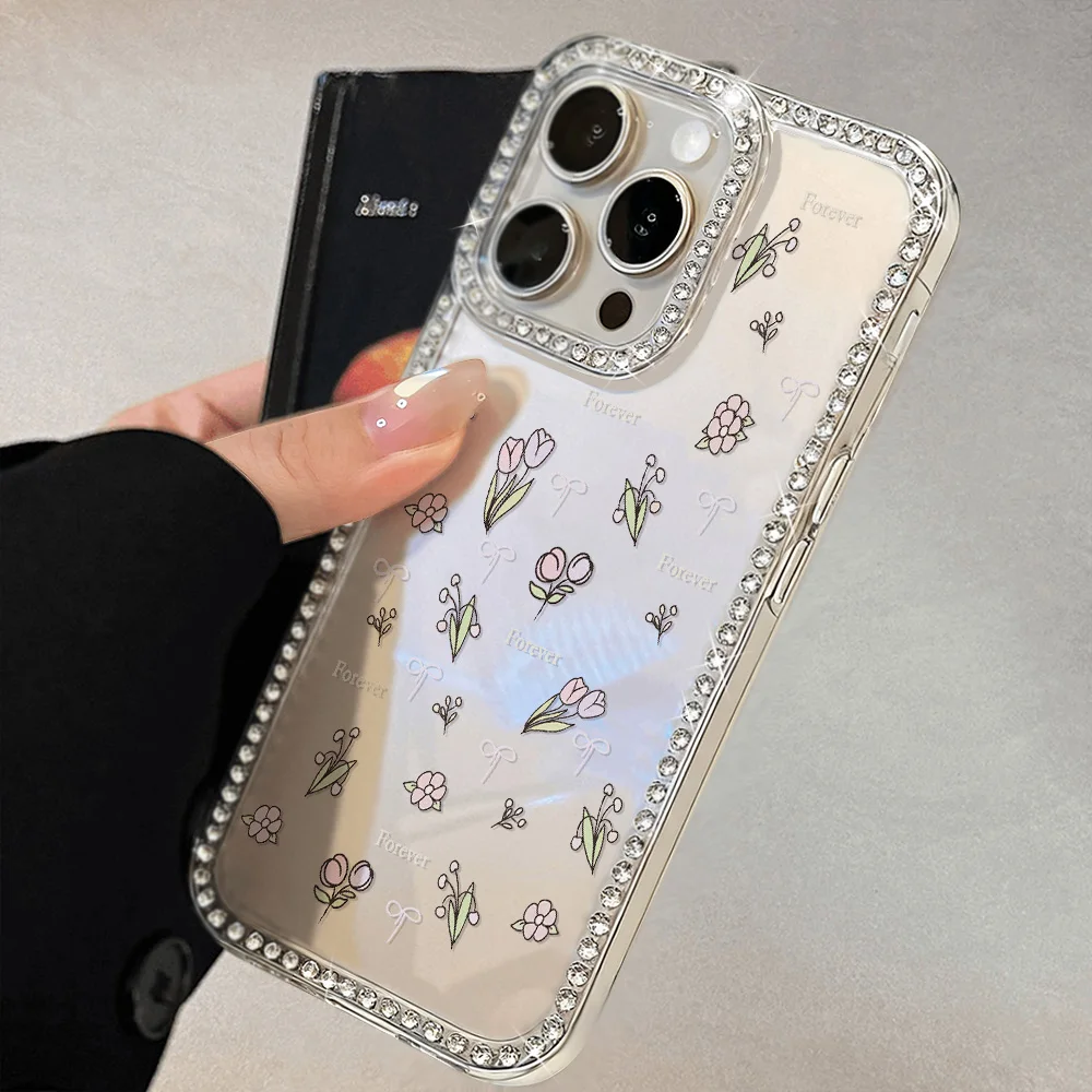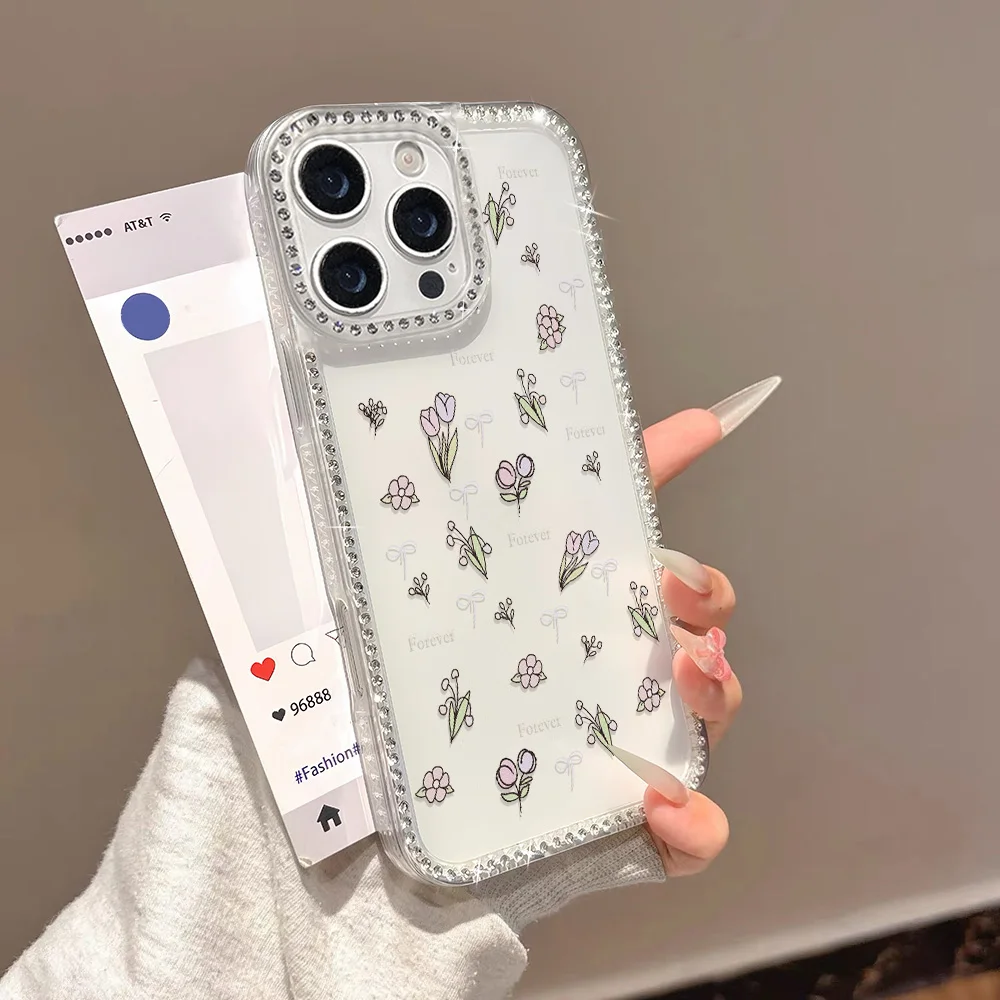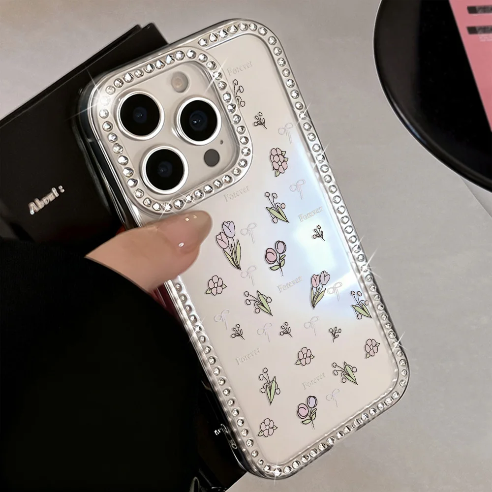 Funda de teléfono con flor de tulipán para iPhone 14 17 Pro 11 13 15 12 16 Pro Max 17 Air a prueba de golpes de lujo con brillo transparente Coque