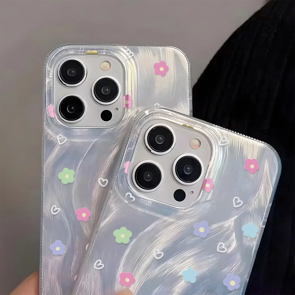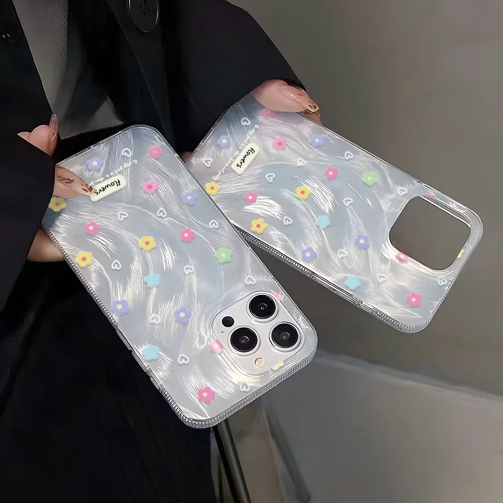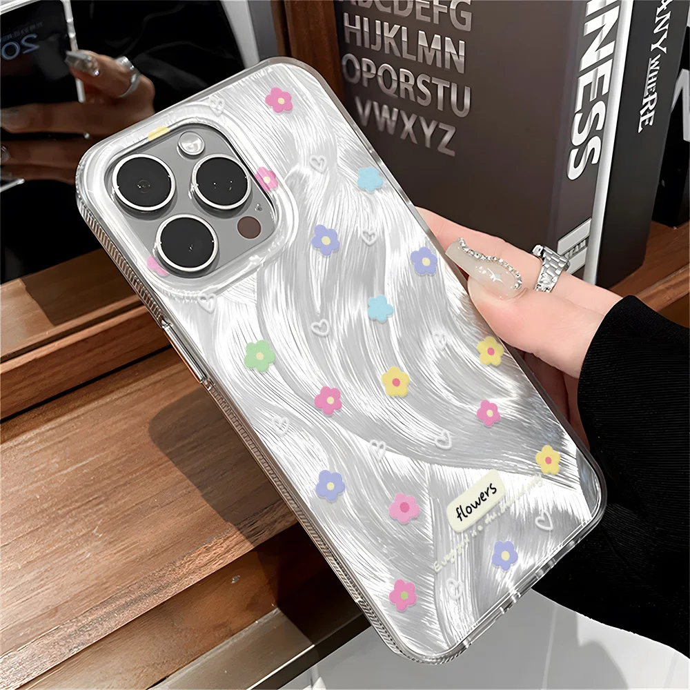 Funda de teléfono de flores de hilo de plumas de lujo para iPhone 11 Fundas iPhone 13 15 Pro Max 14 Plus 12 13pro 15pro fundas IMD de silicona suave