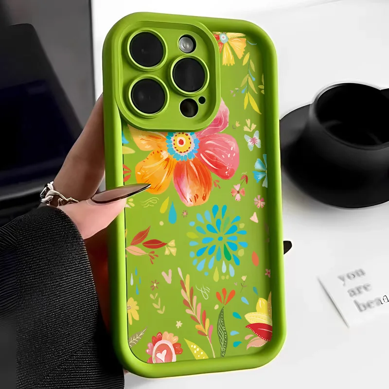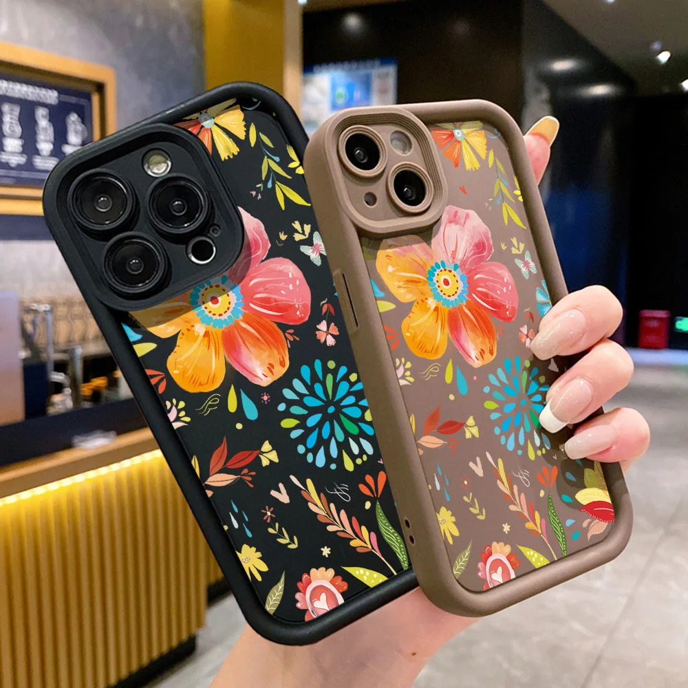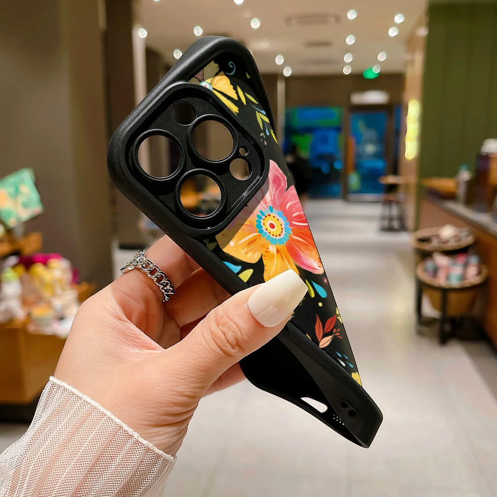Funda de teléfono con flores para iPhone 13 11 15 Pro Max 14 Plus 12 XR X XS 7 8 SE 13pro 15pro silicona líquida Color sólido Funda Coque