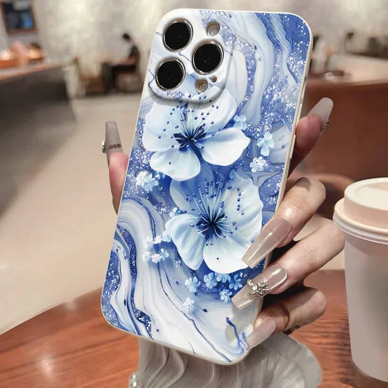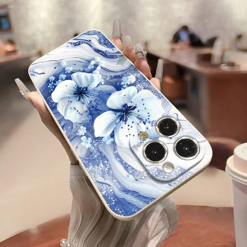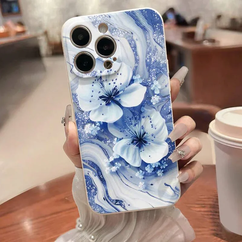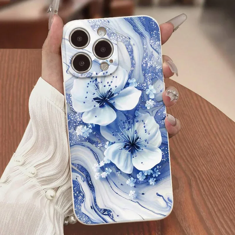 Funda de teléfono con flores para iPhone 16 15 14 13 12 11 Pro Max XS X XR 16E 7 8 Plus SE 2022 13 12 Mini cubierta de parachoques de silicona a prueba de golpes