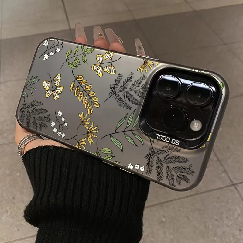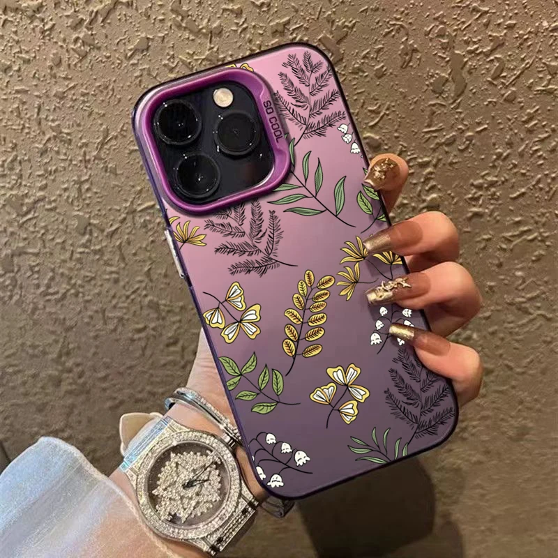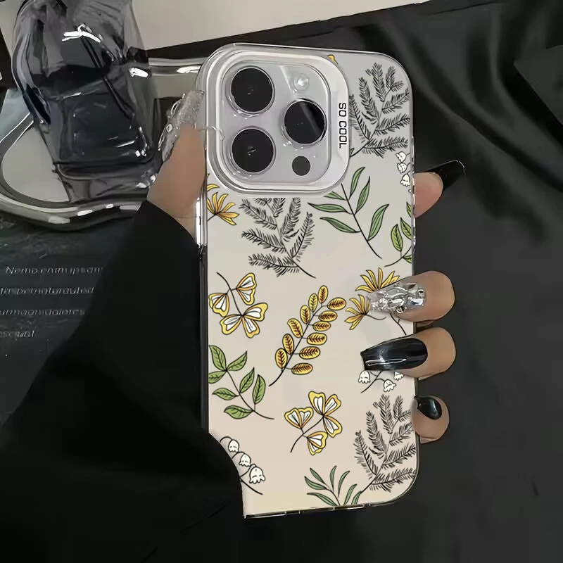 Comprar Funda de teléfono con flores y hojas para iPhone, carcasa trasera a prueba de golpes para modelos 15, 11, 12, 13, 14 Pro Max, 14, 15 Plus, 7, 8 Plus, X, XR, XS MAX, SE2