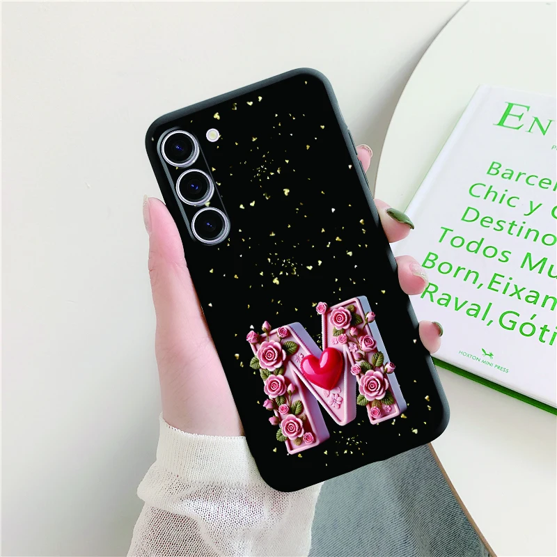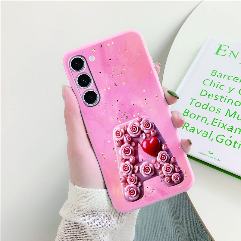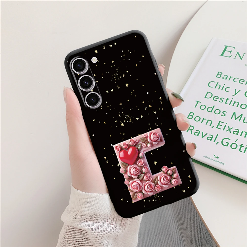 Funda de teléfono con forma de corazón, amor, Día de San Valentín, para Samsung Galaxy S25 Plus S25 FE S25 Ultra, funda protectora con letras artísticas rosas para mujer
