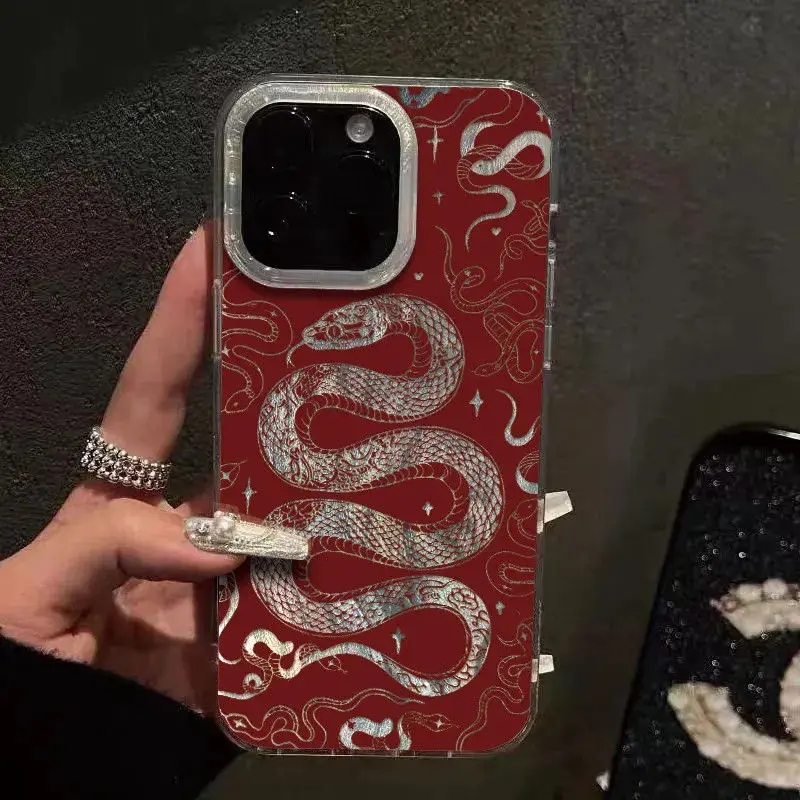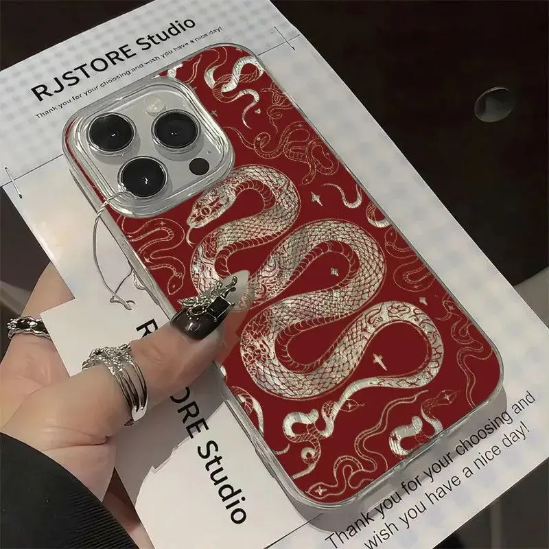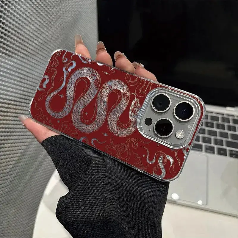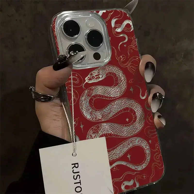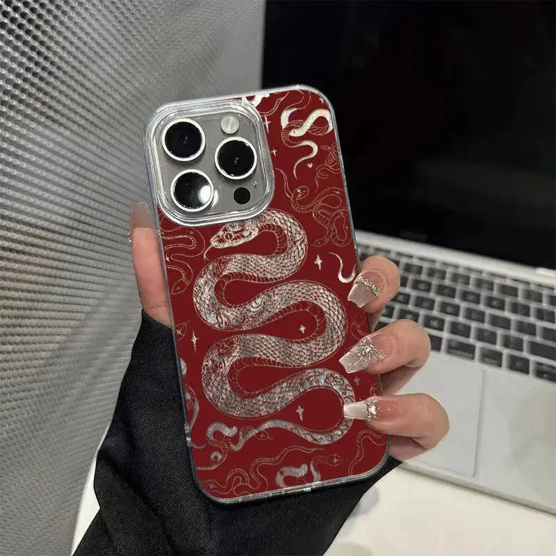 Comprar Funda de teléfono con forma de serpiente y estrella hueca para iPhone 16 15 14 13 12 11 Pro Max X Xs XR XSMax 8 7 6 6s Plus, funda trasera con textura de plumas