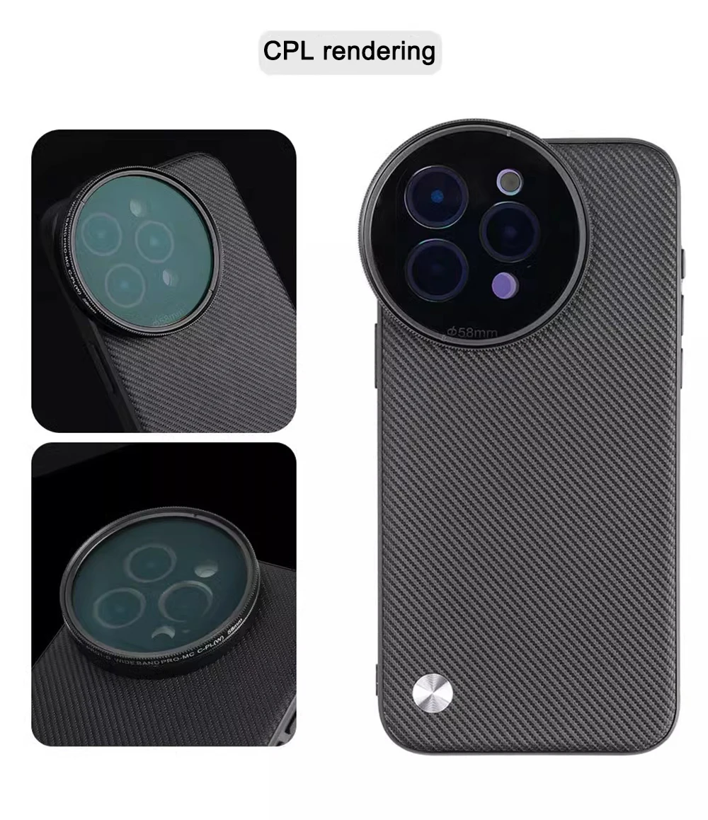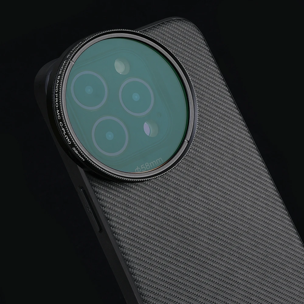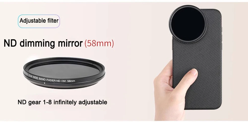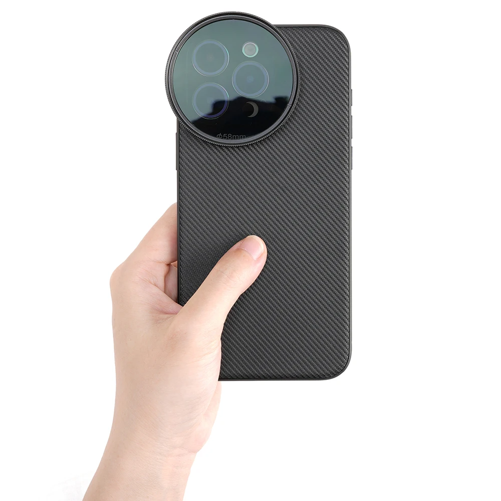 Adaptador de filtro de liberación rápida de 58 mm: coloque el adaptador de filtro de 58 mm en la carcasa del teléfono y monte cualquier filtro de 58 mm, incluidos ND, CPL, difusión negra, contaminación ligera 8on y filtros de color degradados, para disparos artísticos, cinematográficos y expresivos.El adaptador de filtro de liberación rápida se puede conectar y quitar en un segundo.