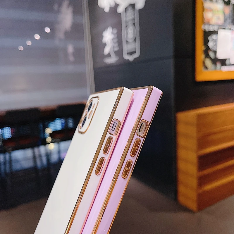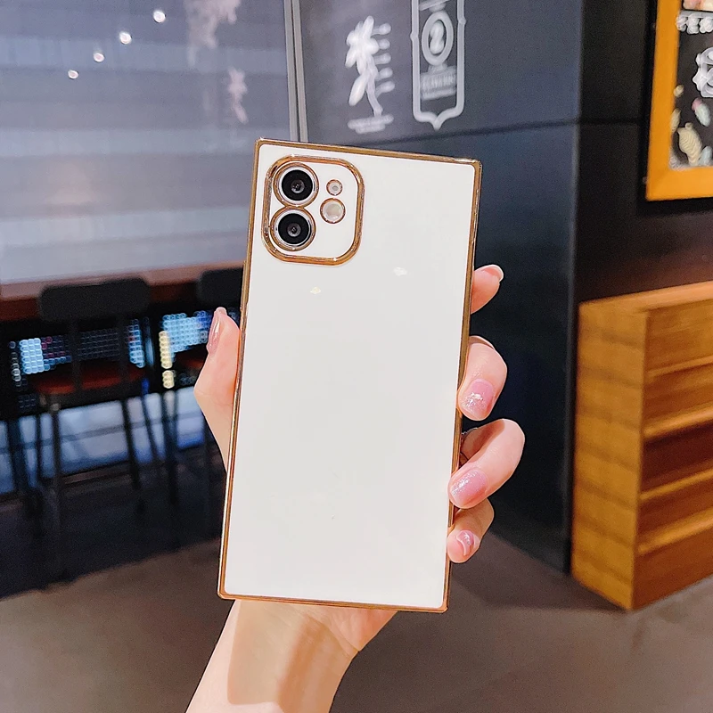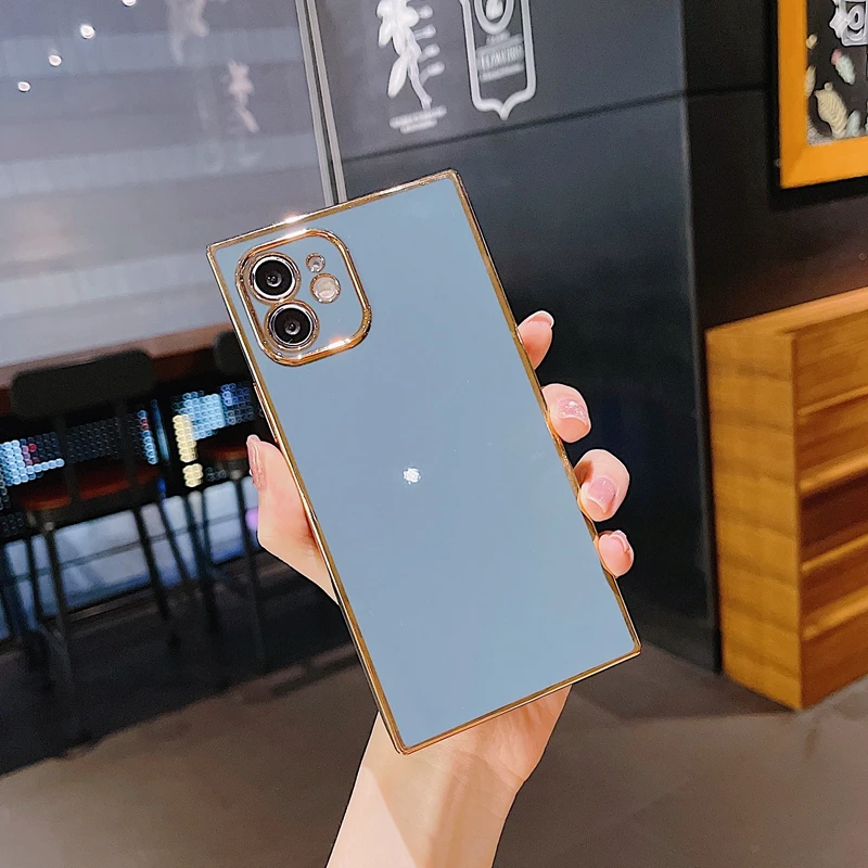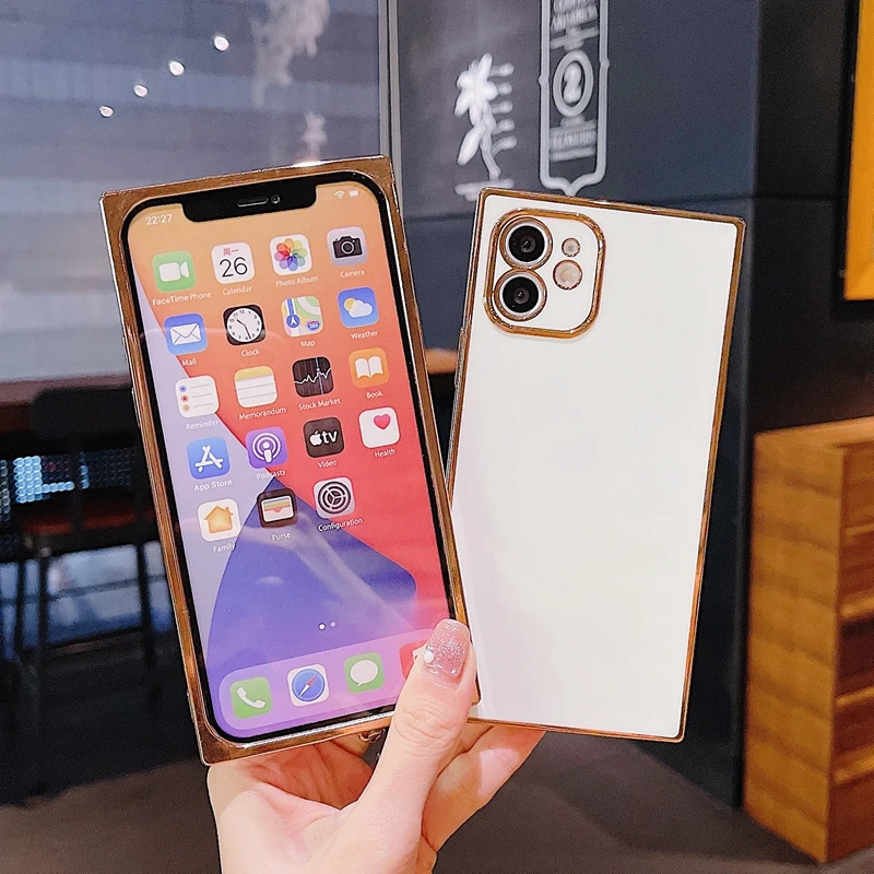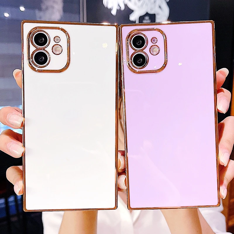 Comprar Funda de teléfono galvanizada cuadrada suave para iPhone, 11, 12 Pro, Max, XS, X, XR, Max, 7, 8 Plus, Mini SE, cubierta trasera de parachoques de silicona 2020