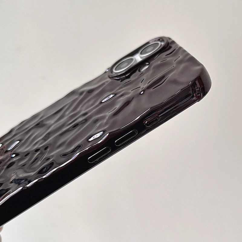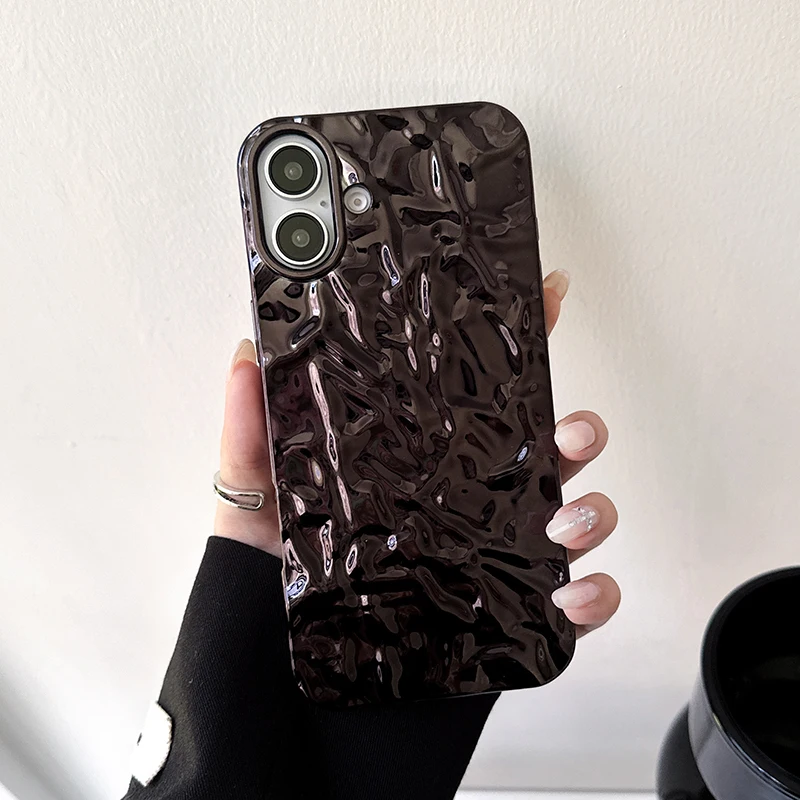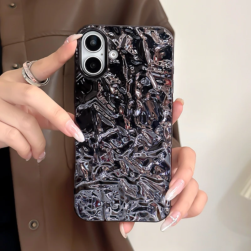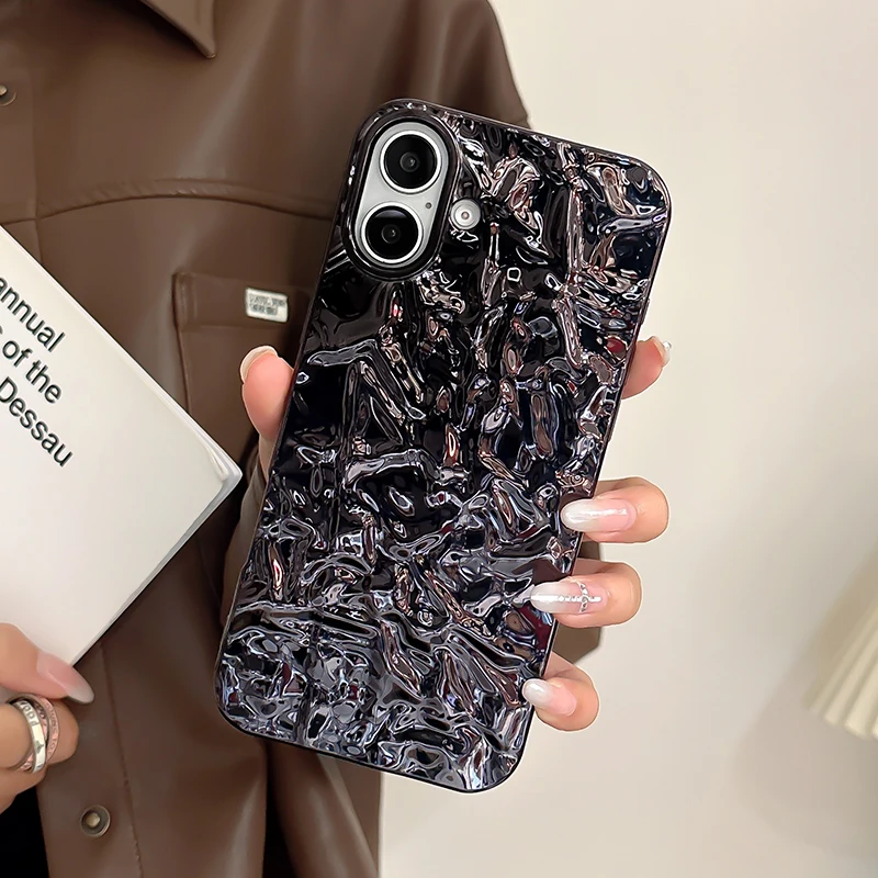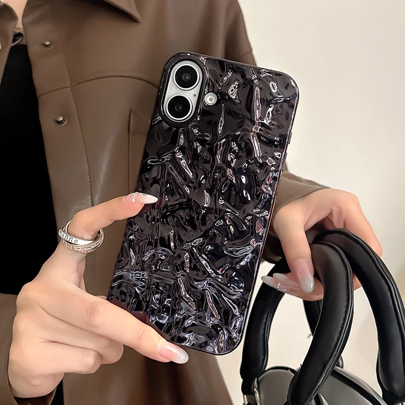Electroplated Black Shiny Wrinkled Texture Phone Case For iPhone 16 15 14 13 12 11 Pro Max 16 Plus Anti-Drop Soft Silicone Cover