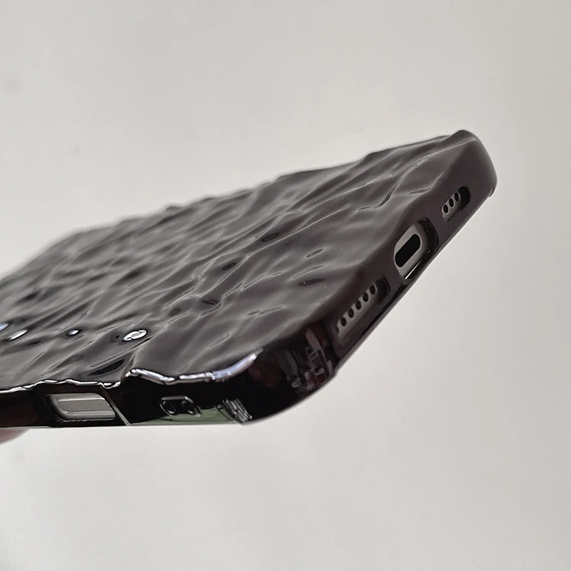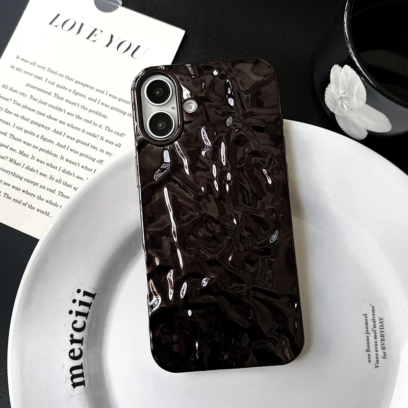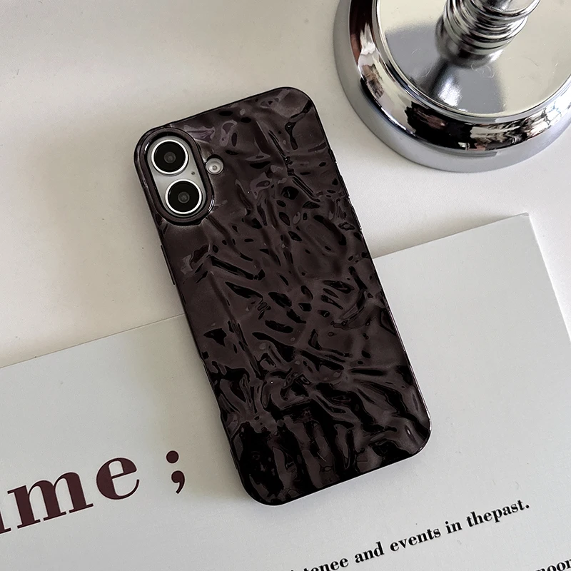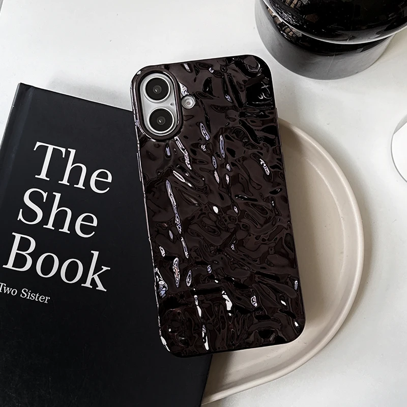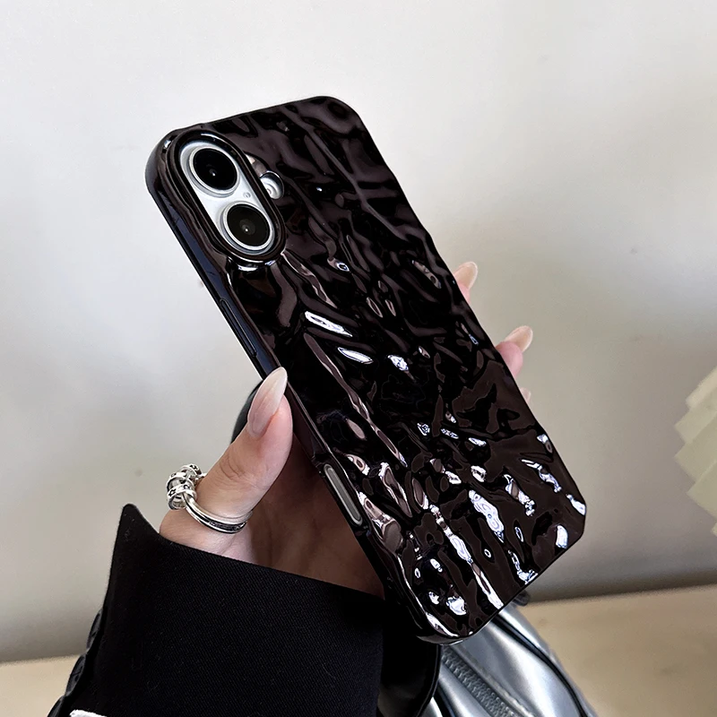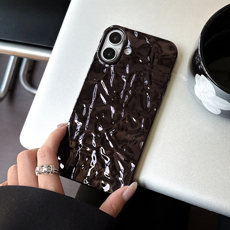 Electroplated Black Shiny Wrinkled Texture Phone Case For iPhone 16 15 14 13 12 11 Pro Max 16 Plus Anti-Drop Soft Silicone Cover