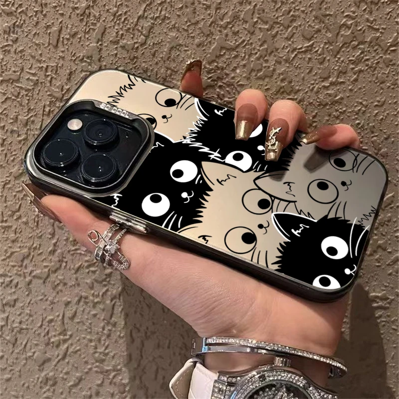 Comprar Funda de teléfono de gato de dibujos animados para iPhone 16 15 14 13 12 11 Pro Max Plus 15 16E X XS Max XR 7 8 Plus SE 2020 2022 funda de teléfono IMD plateada