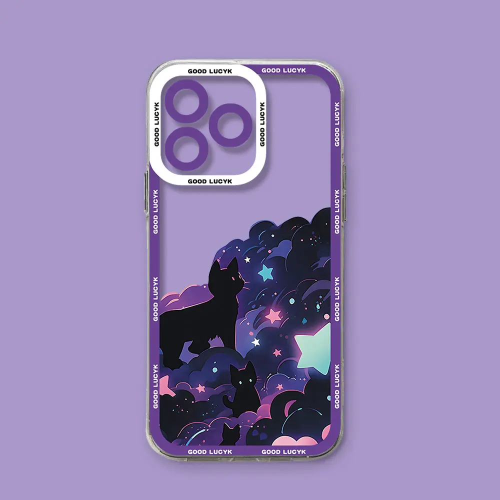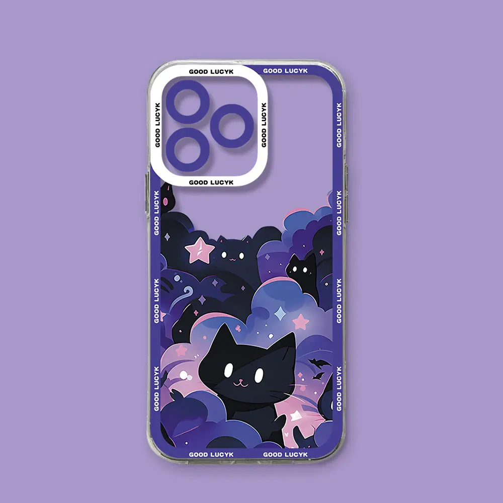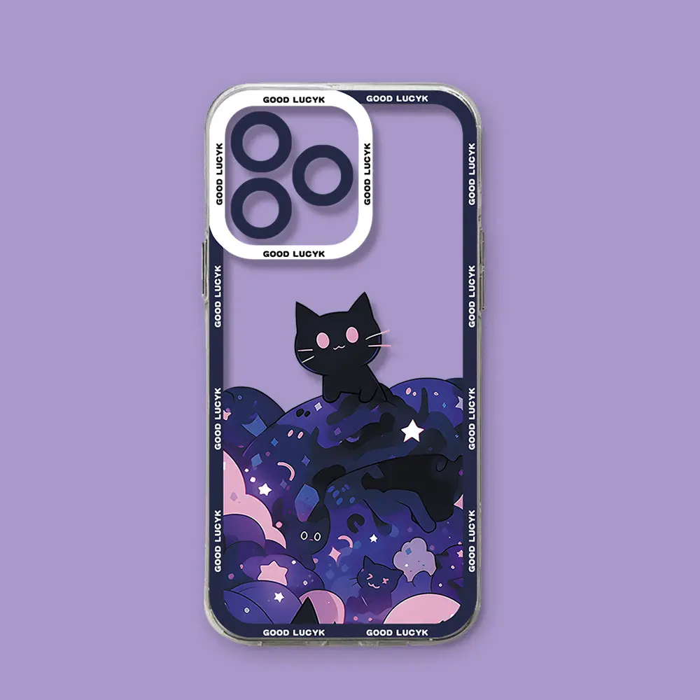 Funda de teléfono de gato negro con cielo estrellado de dibujos animados para TECNO CAMON 30 20 POVA 6 5 SPARK 10 Infinix Smart 8 7 Note Hot 40 30i 20i Pro 5G