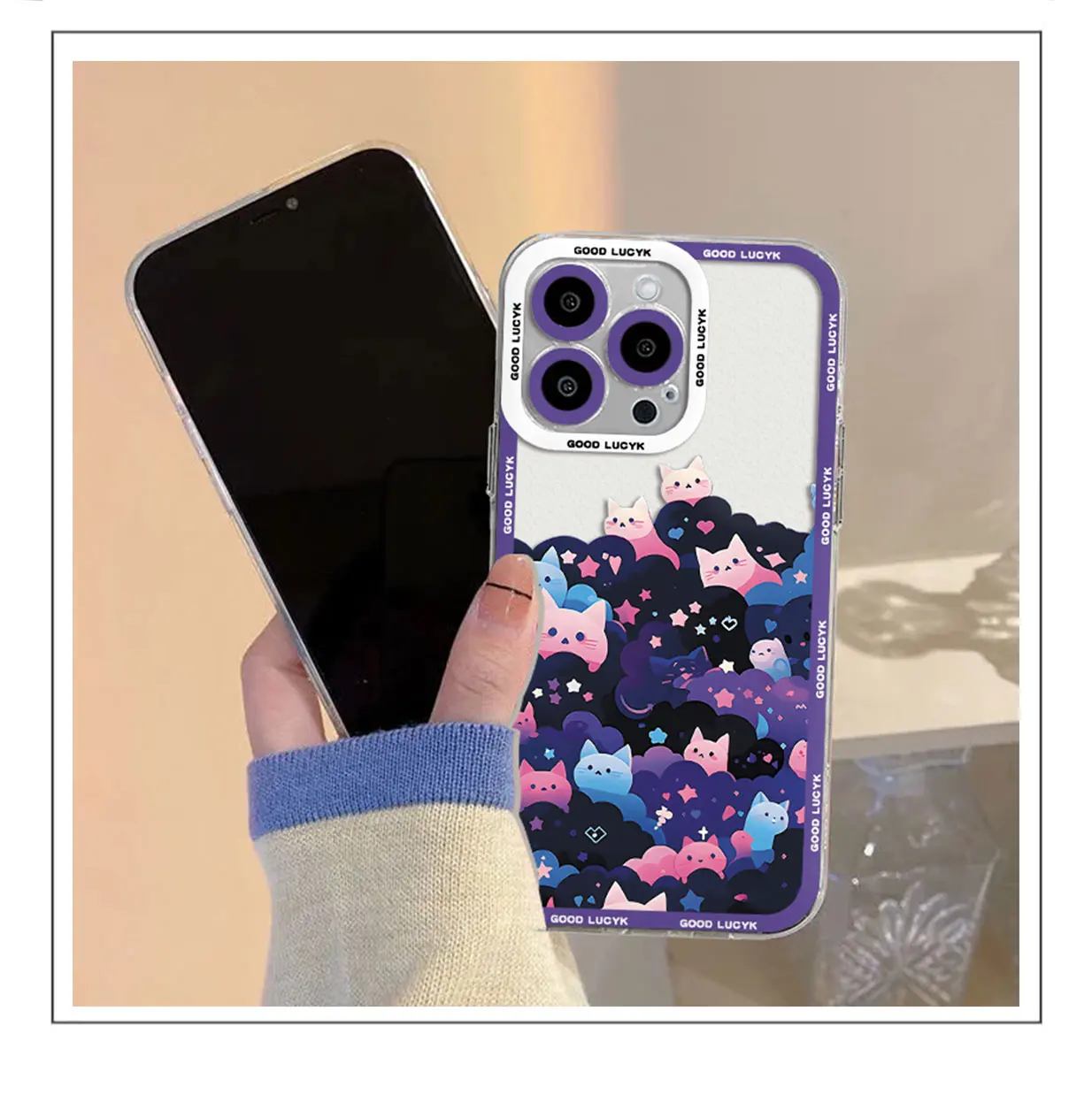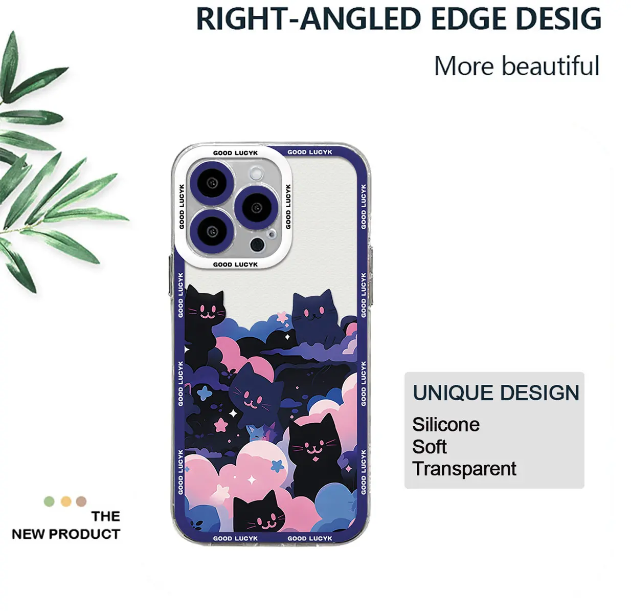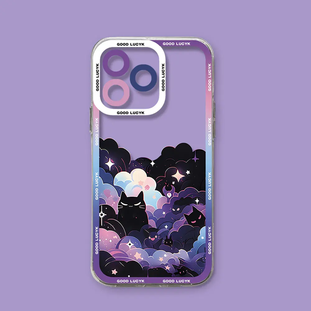 Funda de teléfono de gato negro con cielo estrellado de dibujos animados para TECNO CAMON 30 20 POVA 6 5 SPARK 10 Infinix Smart 8 7 Note Hot 40 30i 20i Pro 5G